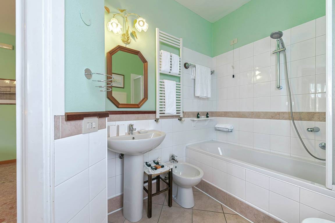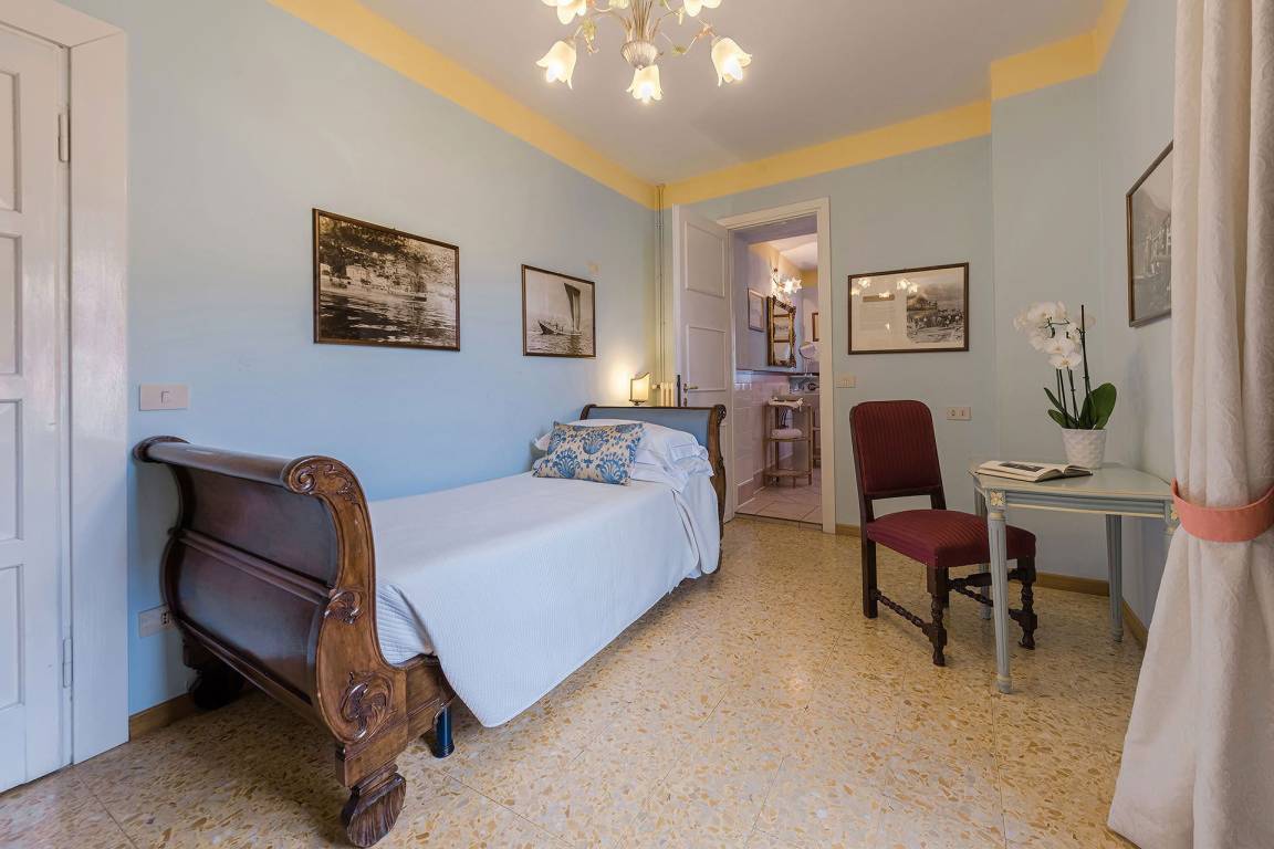 Das erste Obergeschoss enthält 5 klimatisierte Doppelschlafzimmer, jedes mit eigenem Badezimmer. Auf Anfrage und gegen Aufpreis stehen 1 Zweibettzimmer und 1 einfach ausgestattetes Einzelzimmer zur Verfügung. 2 der Doppelschlafzimmer verfügen über angrenzende Einzelzimmer, die auf Anfrage nutzbar sind, jedoch nicht klimatisiert.
