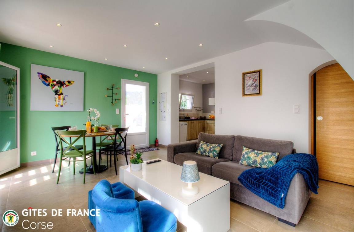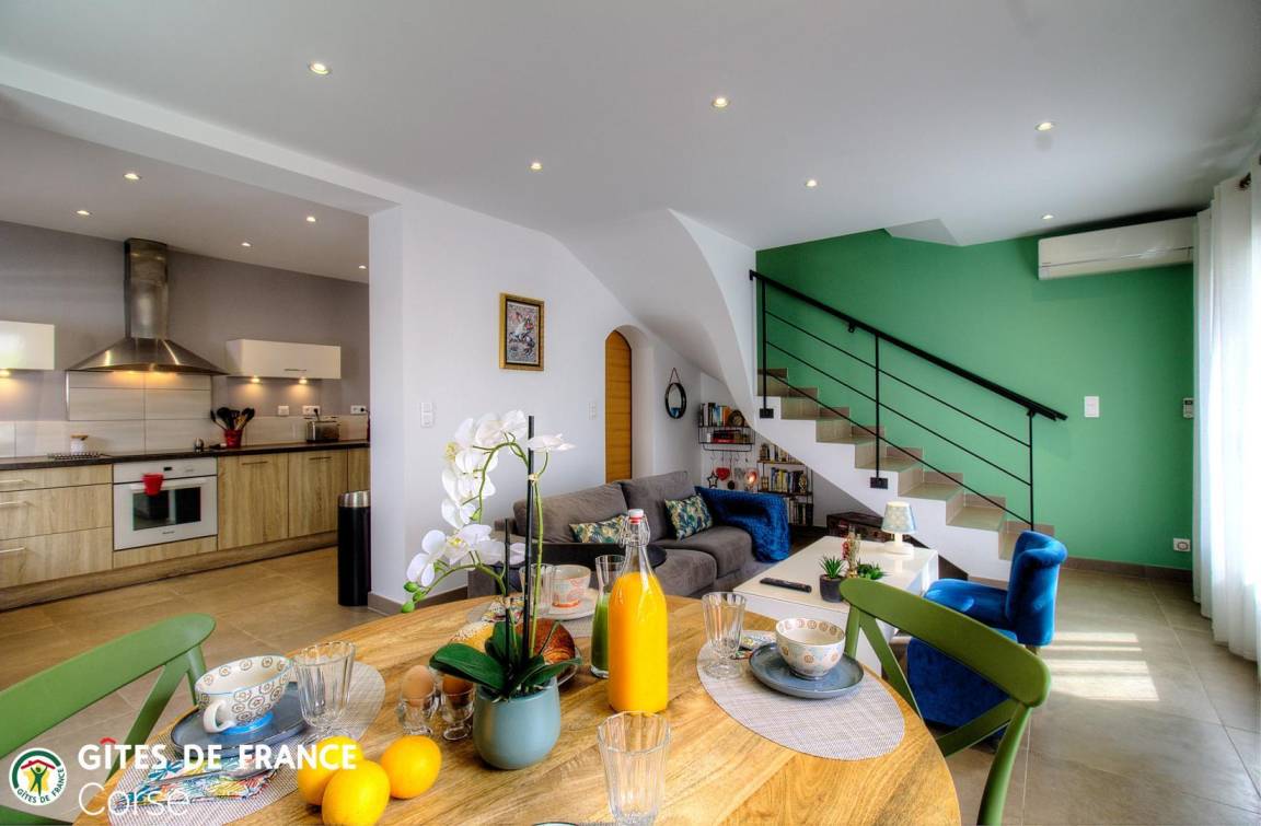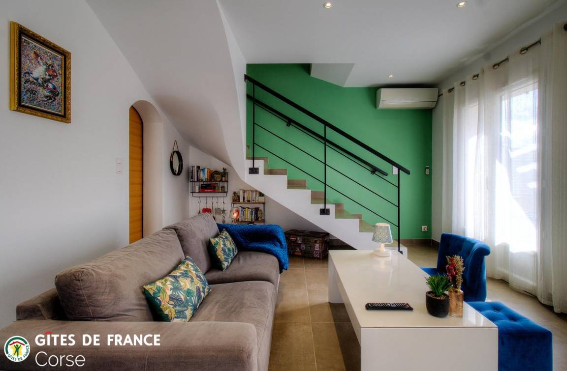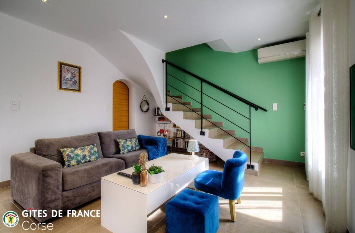Am Eingang von Calvi, auf einem eingezäunten Grundstück von 3000 m² mit dem Haus der Eigentümer, Haus von 59 m², das an ein anderes Haus angrenzt, das von der Familie der Eigentümer bewohnt wird. Es setzt sich wie folgt zusammen: