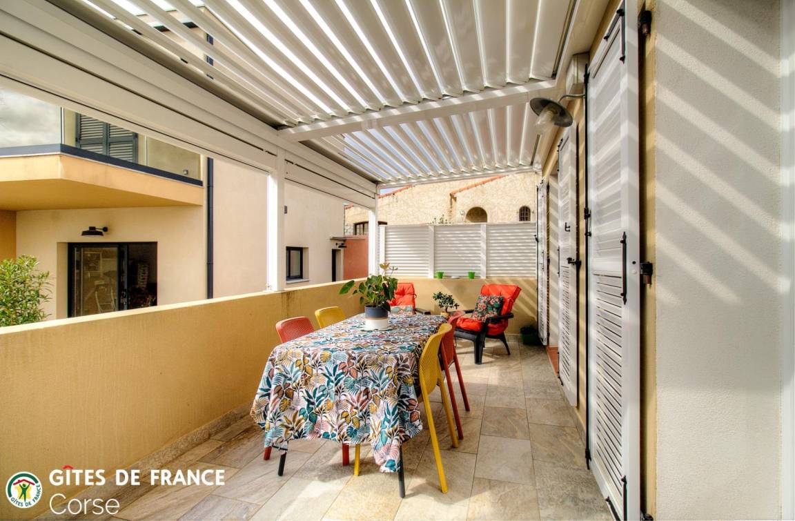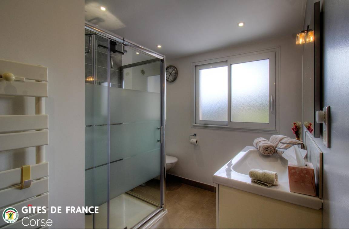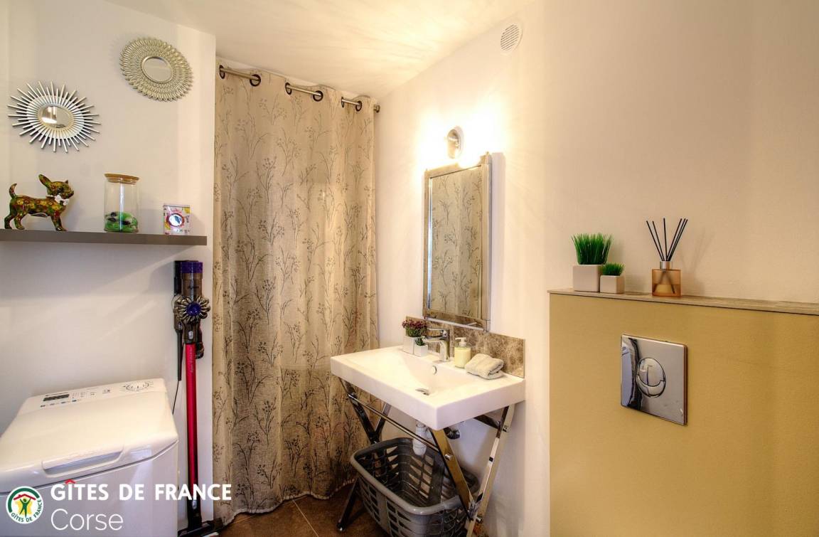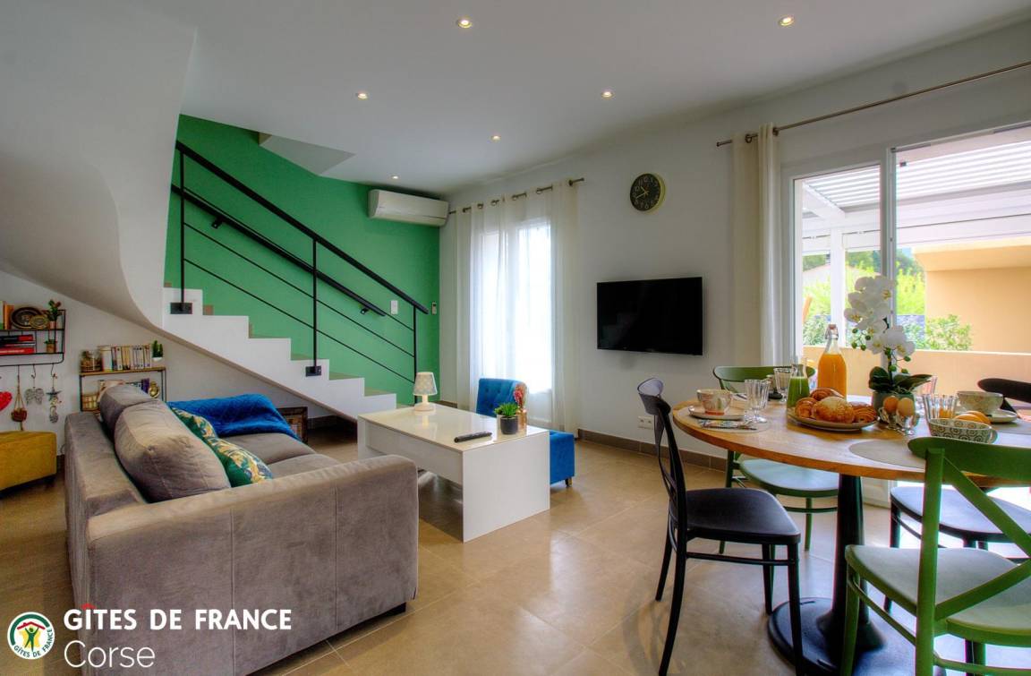 Am Eingang von Calvi, auf einem eingezäunten Grundstück von 3000 m² mit dem Haus der Eigentümer, Haus von 59 m², das an ein anderes Haus angrenzt, das von der Familie der Eigentümer bewohnt wird. Es setzt sich wie folgt zusammen: