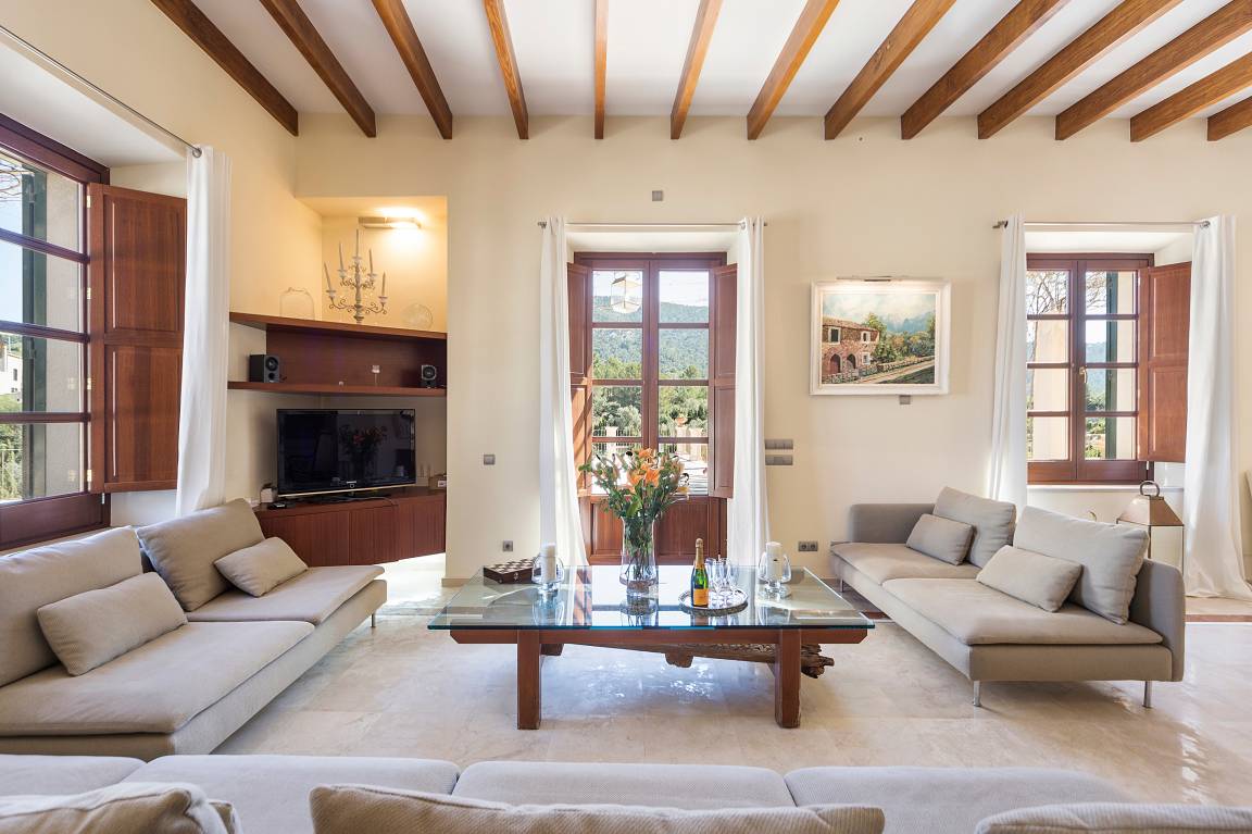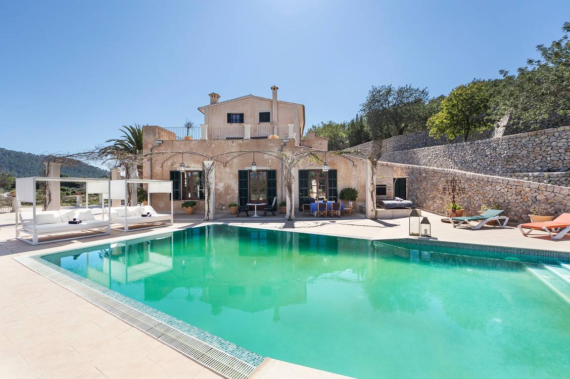 The elegant house Son Enseñat of 550 m² accommodates 12 people in 6 bedrooms. It is on 700 m² of land with terraces and mature gardens filled with trees, plants and flowers.