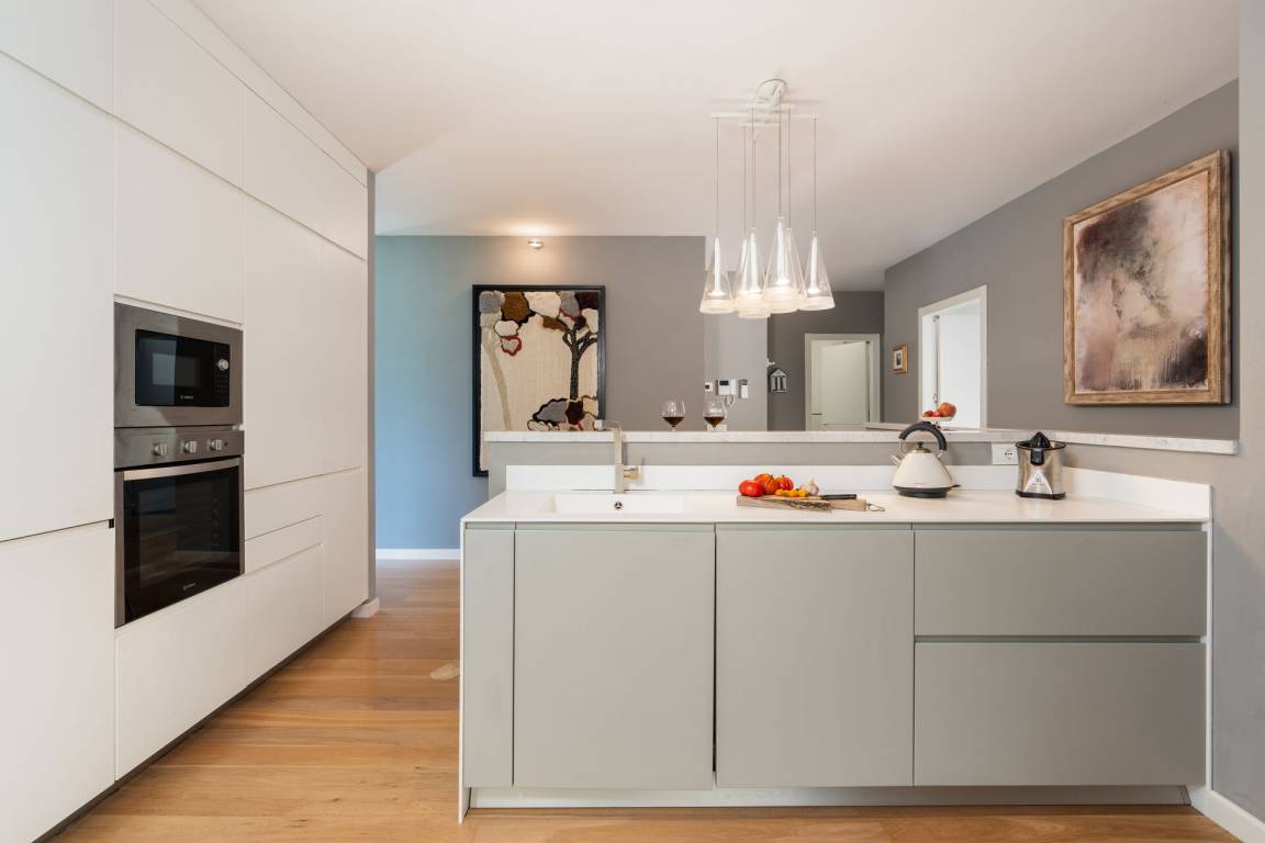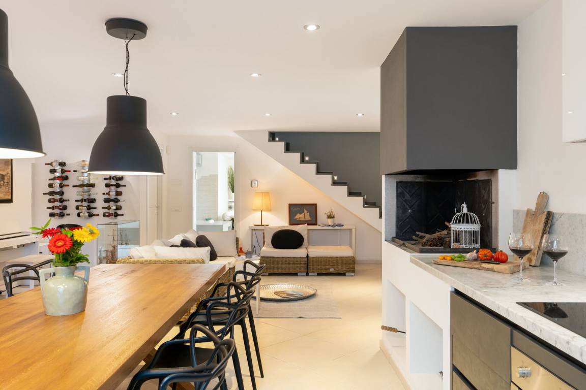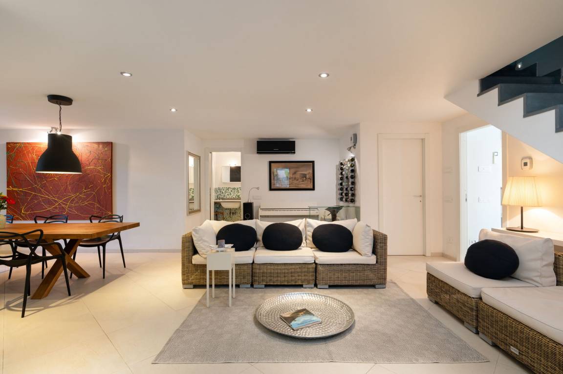 Wohnküche: gut ausgestattete Küche, Esstisch, Spülmaschine, Kühlschrank, Tiefkühler, Mikrowelle, Herd, Ofen, Italienische Kaffeemaschine, Sofa, WiFi Internet, Klimaanlage, Satelliten-TV.
