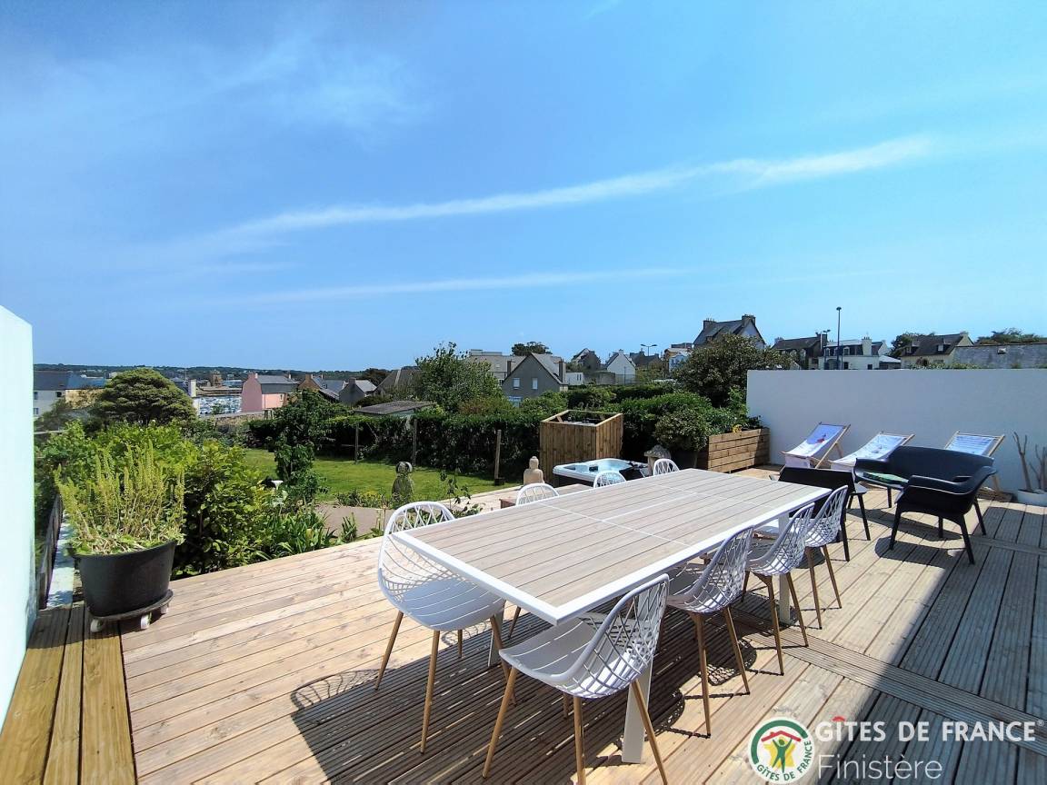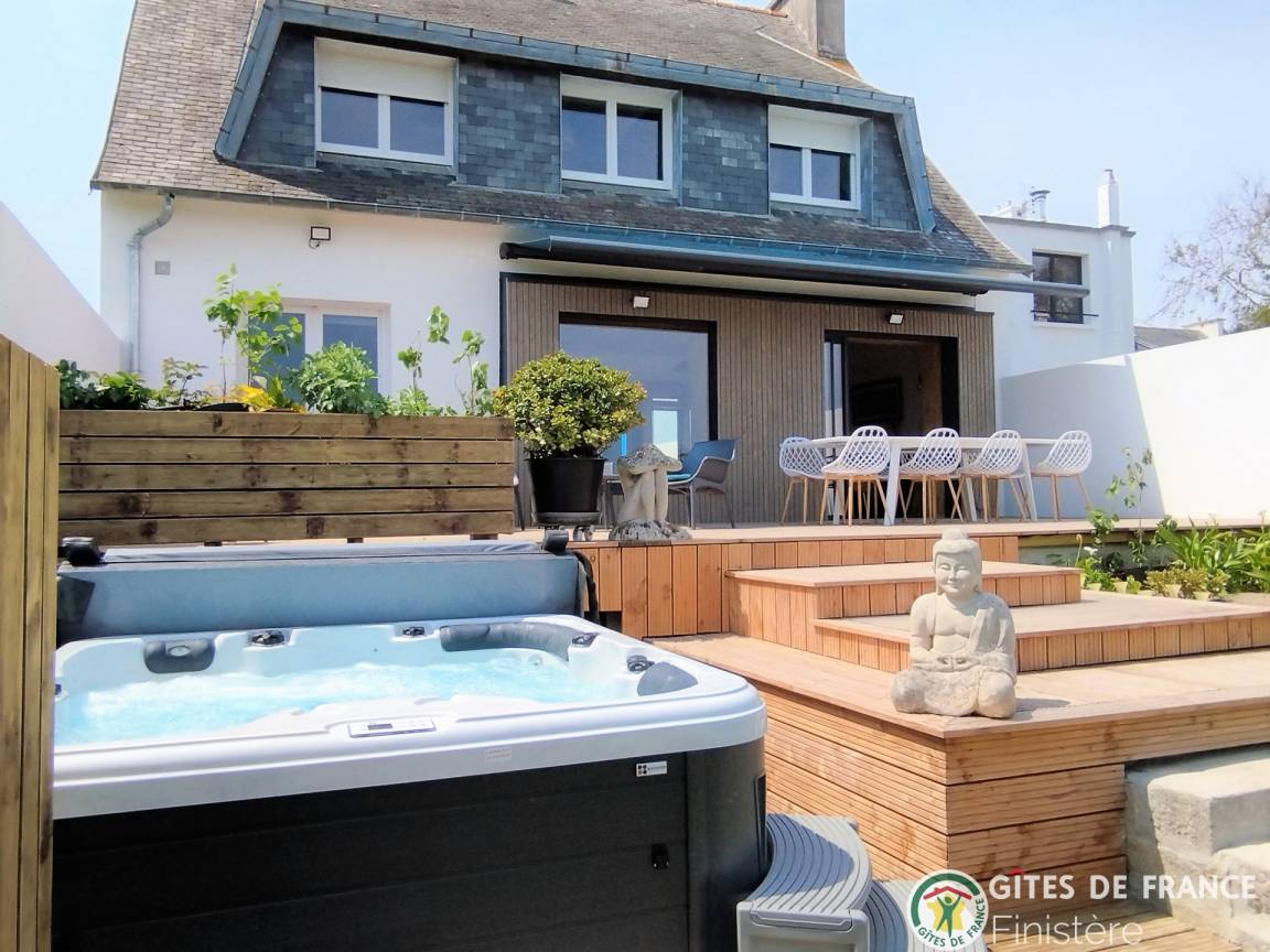 „Cette maison rénovée, idéalement située près du centre de Camaret, offre calme et luminosité. Son jardin fleuri, sa terrasse surélevée avec vue imprenable et son jacuzzi sont parfaits pour se détendre. L’intérieur est confortable et fonctionnel, avec une cuisine bien équipée, un salon cosy et des chambres agréables. Le propriétaire, attentif et de bon conseil, contribue à rendre le séjour encore plus agréable. Un lieu idéal pour des vacances reposantes et enrichissantes en presqu’île !“