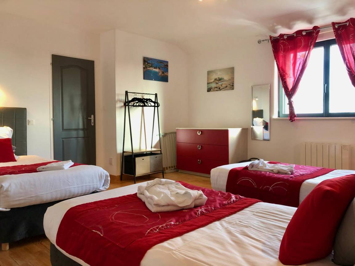 Ihr Ferienhausangebot enthält: Im Erdgeschoss: Ess-Wohnsalon mit Einbauküche (Nespresso-Maschine), 1 Schlafzimmer (1 Bett 160x200) mit eigenem Bad (große Dusche), separates WC. Im Obergeschoss: 2 Schlafzimmer (2 Einzelbetten) und (3 Einzelbetten), Badezimmer mit Dusche, separates WC. Betten bei Ihrer Ankunft bezogen. Handtücher geliefert. Sicherer Wi-Fi-Internetzugang. Terrasse mit Garten- und Entspannungsmöbeln, 600 qm großes, eigenes Grundstück mit Schaukel. Zur gemeinsamen Verfügung, überdachtes und beheiztes Schwimmbad von 10x5 M, ganzjährig geöffnet, Trampolin, Spiel-Fußballplatz. Nebenkosten inbegriffen.