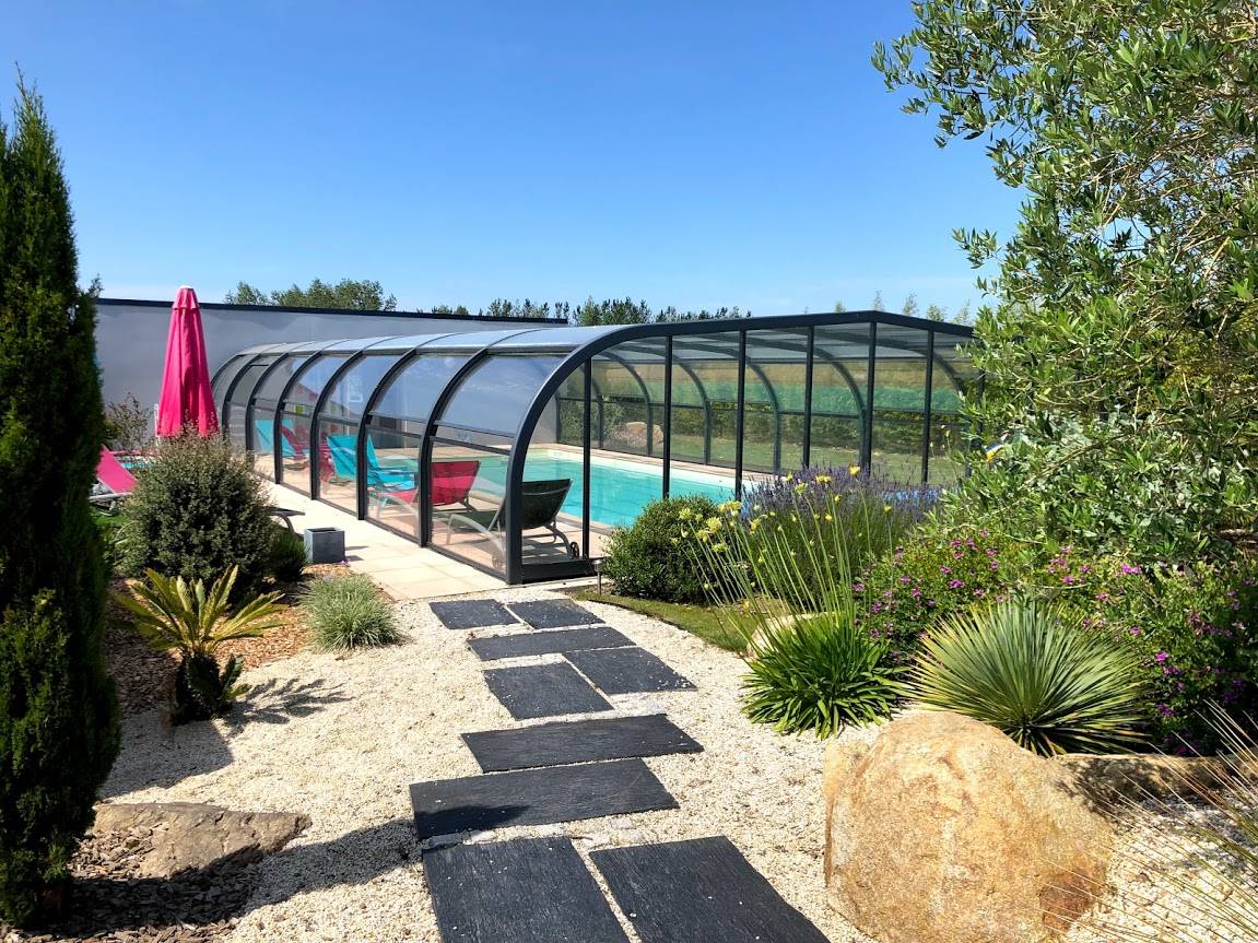 „Le gîte est très beau et très fonctionnel; il est très spacieux et très calme. la localisation est parfaite pour visiter la région et les commerces sont à quelques minutes de voiture. La piscine chauffée est incroyable et le système de rotation permet de l'avoir pour soi tout seul ce qui est un vrai plus. Nos enfants ont adoré. Je recommande vivement cette location. Merci aux propriétaires.“