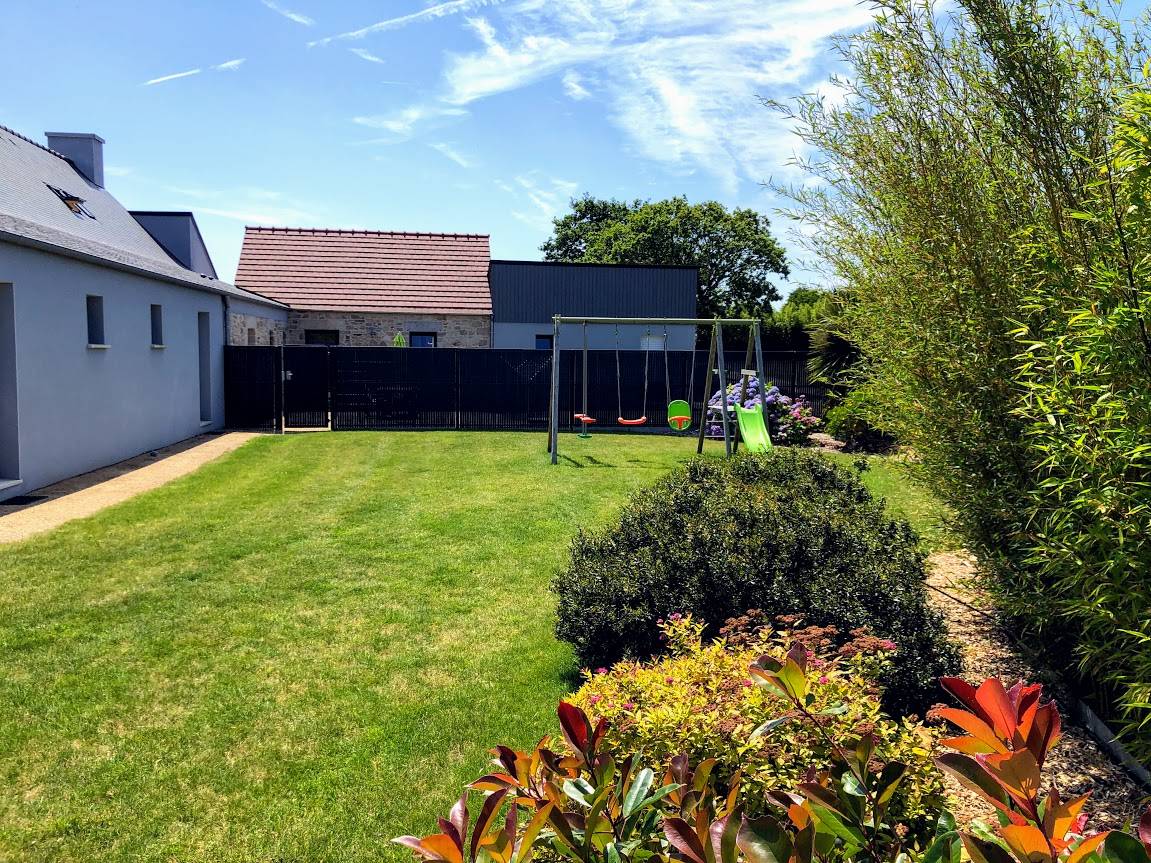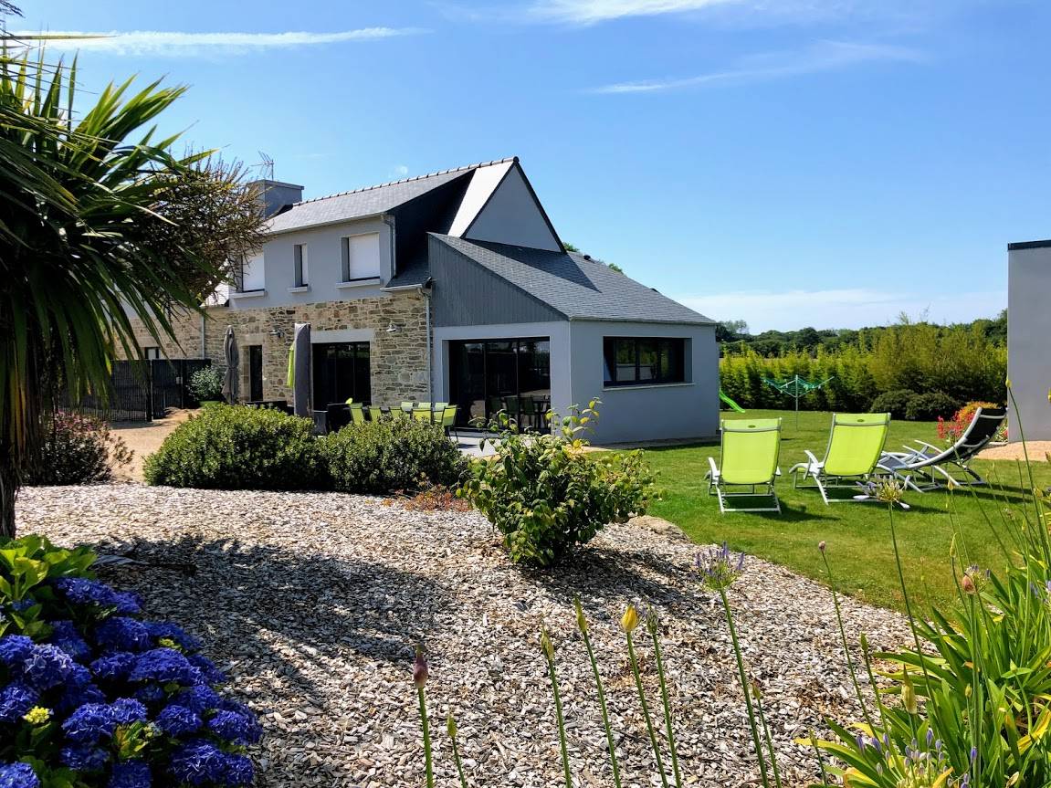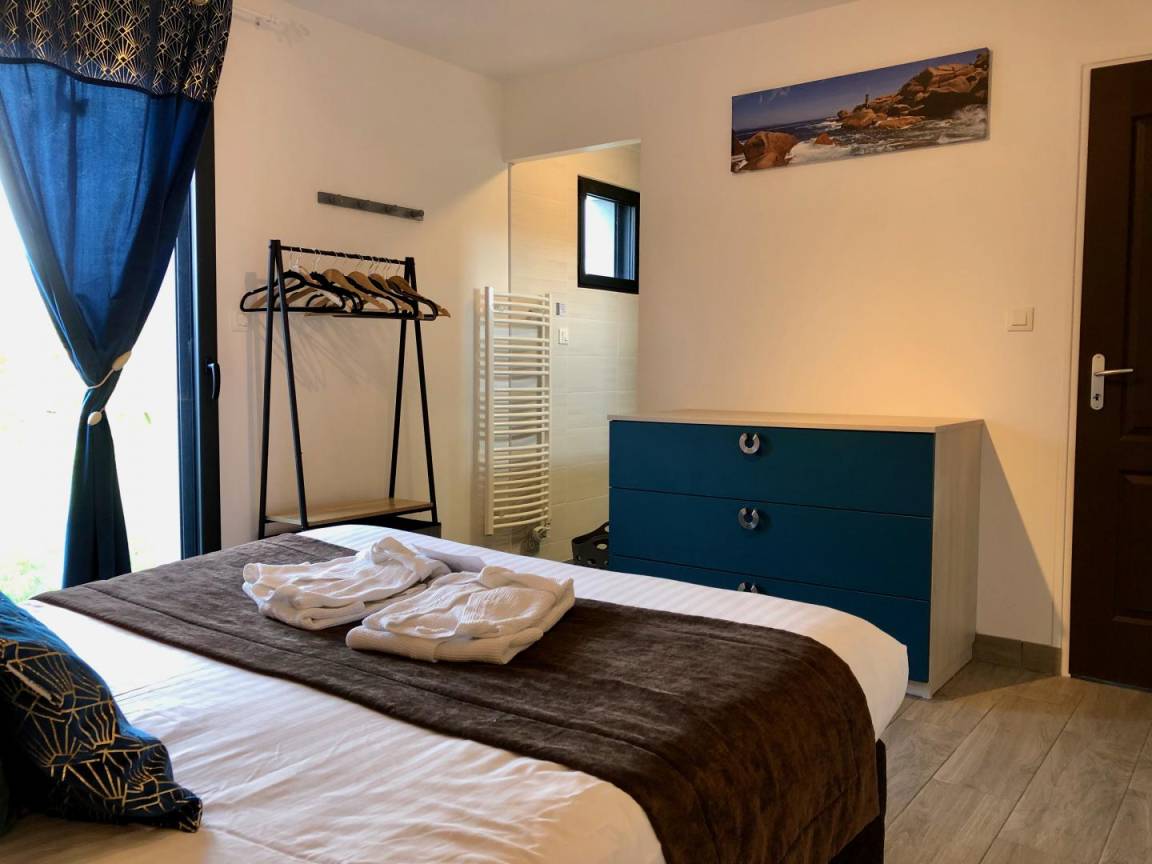 Ihr Ferienhausangebot enthält: Im Erdgeschoss: geräumigen Ess-Wohnsalon mit Einbauküche (Nespresso-Maschine), separates WC, 2 Stufen hinunter zum Schlafbereich: 2 Zimmer (2 Betten 160x200), jedes mit eigenem Bad (große Dusche), WC. Im Obergeschoss: 2 Schlafzimmer (3 Einzelbetten) (2 zusammenstellbare Betten), Badezimmer mit Dusche und WC. Betten bei Ihrer Ankunft bezogen. Handtücher geliefert. Nebenkosten inbegriffen. Sicherer Wi-Fi-Internetzugang. Terrasse und eigener umzäunter Garten mit Entspannungsmöbeln, Schaukel. Zur gemeinsamen Verfügung, überdachtes und beheiztes Schwimmbad von 10x5 M, ganzjährig geöffnet, Trampolin, Spiel-Fußballplatz.