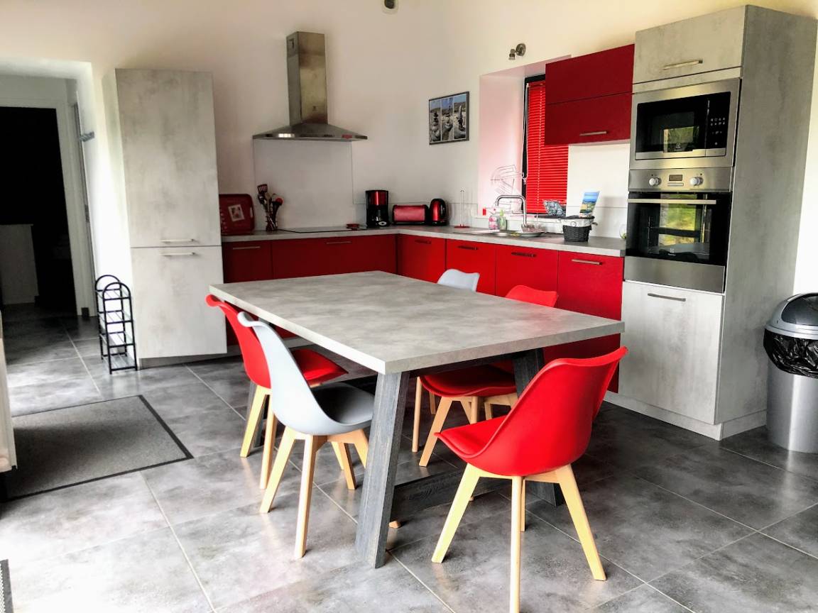 Ihr Aufenthaltsangebot in diesem ebenerdigen Ferienhaus enthält: Ess-Wohnzimmer mit Balken und Steinwänden, Einbauküche mit Nespresso-Maschine, 1 Schlafzimmer (1 Bett 160x200 cm) mit eigenem Bad (große Dusche), 1 Schlafzimmer (3 Einzelbetten) mit eigenem Bad (Dusche), WC. Betten bei Ihrer Ankunft bezogen. Handtücher werden geliefert. Nebenkosten inbegriffen. Sicherer Internetzugang. 2 Terrassen mit Garten- und Entspannungsmöbeln. Schöne Wiese mit Bäumen. Zur gemeinsamen Verfügung, überdachtes und beheiztes Schwimmbad von 10x5 M, ganzjährig geöffnet, Trampolin, Spiel-Fußballplatz.