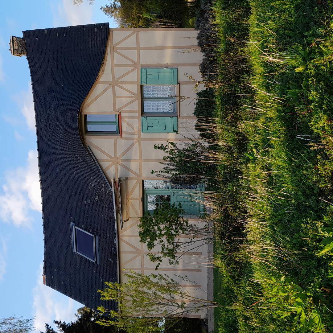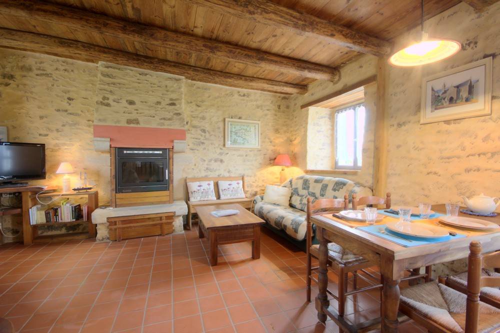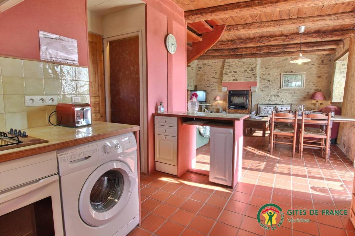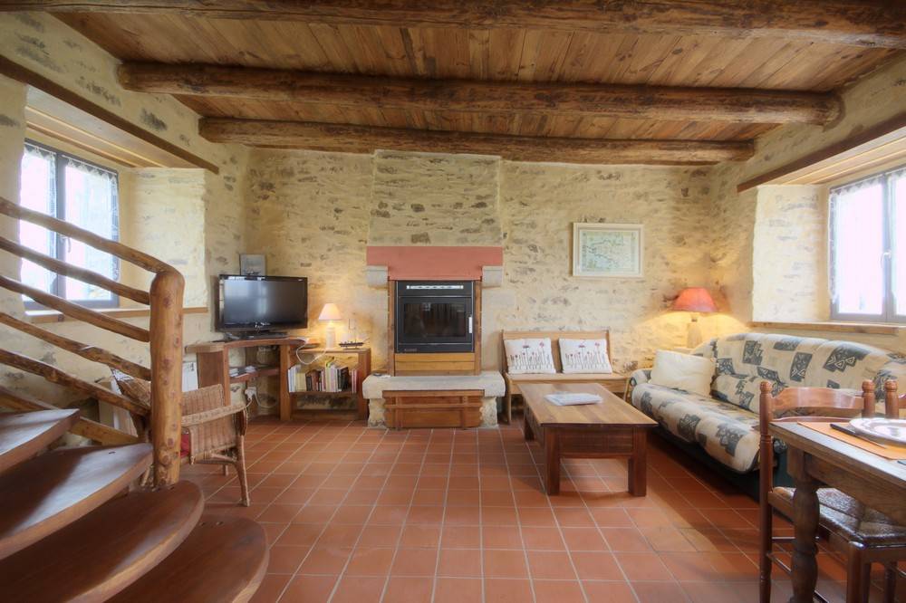 - Im Erdgeschoss: ein Wohnzimmer / Küche / Wohnzimmer, Kamin (Holzpelletseinsatz), ein Badezimmer, eine Toilette.