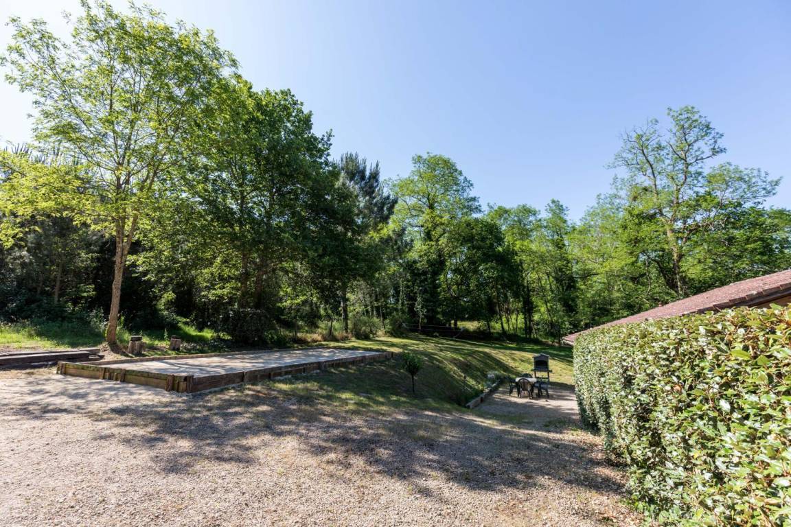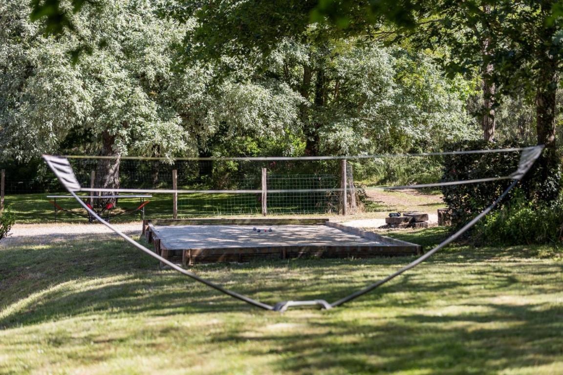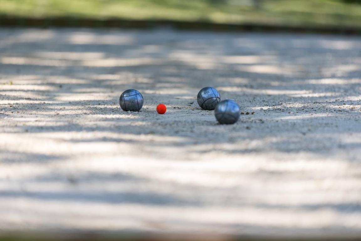 Tischfußball, Tischtennis und Holzspiele sind vorhanden. Bouleplatz.