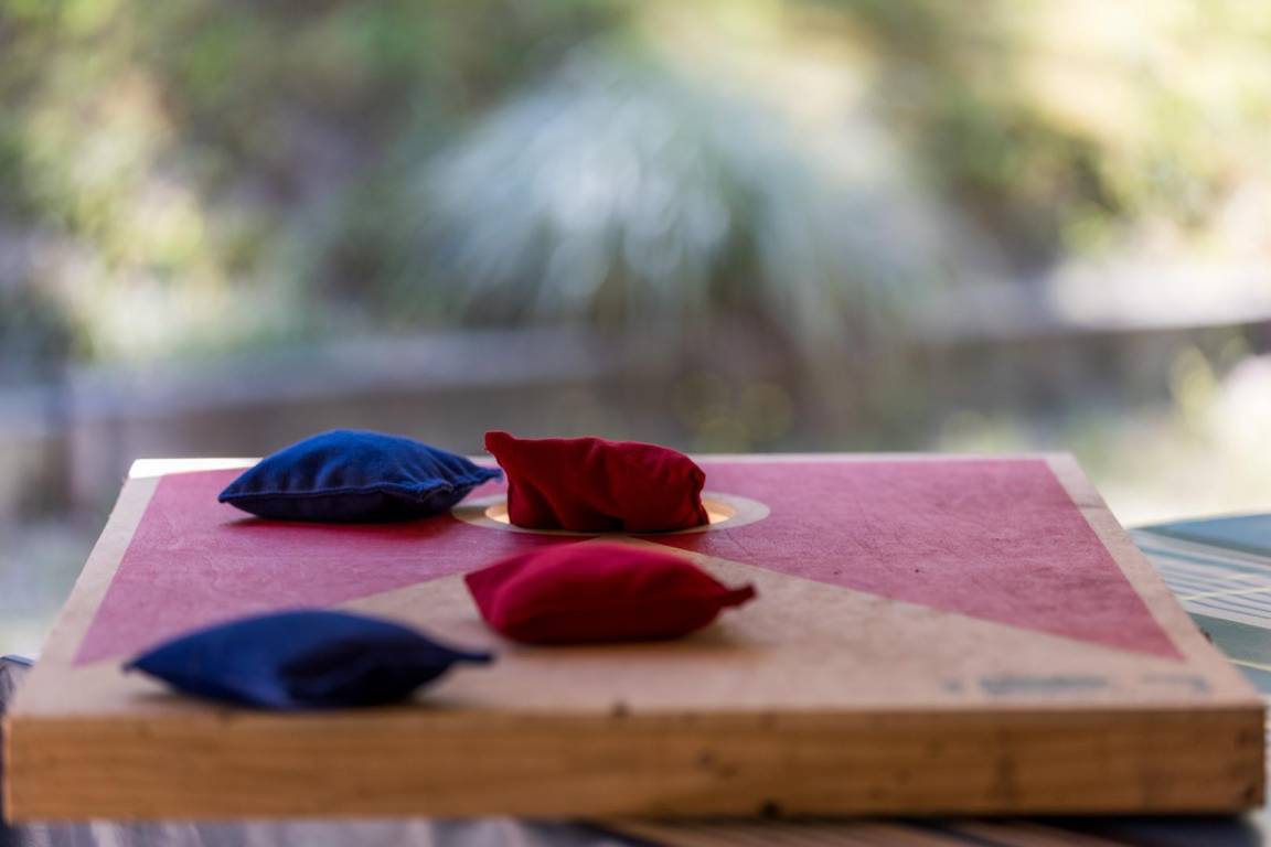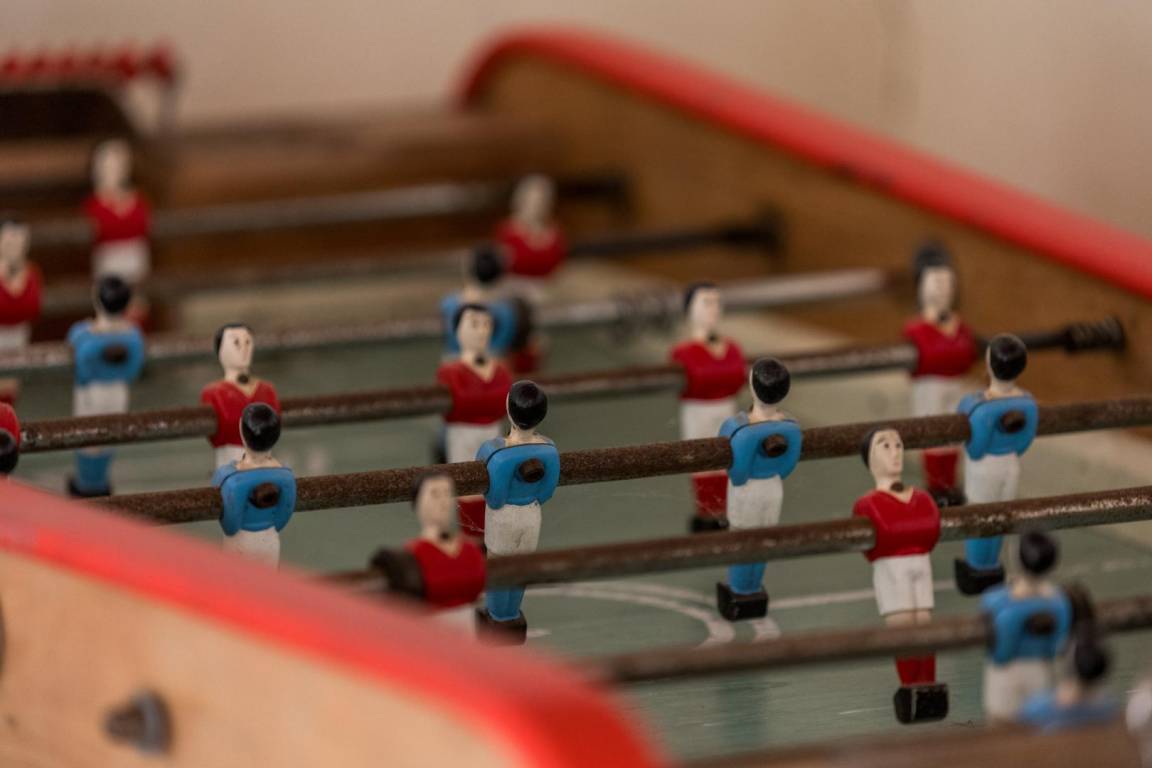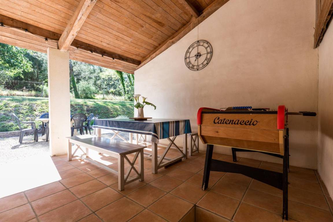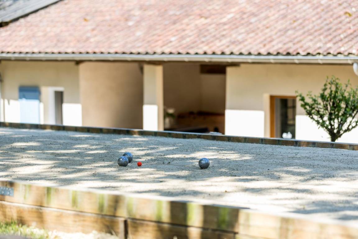 Tischfußball, Tischtennis und Holzspiele sind vorhanden. Bouleplatz.
