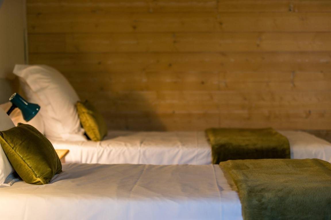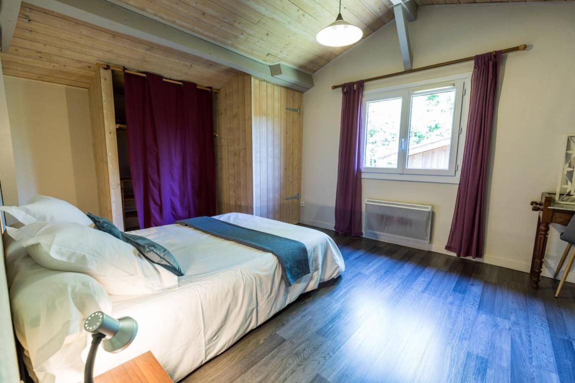 2 Schlafzimmer (2 Doppelbetten), eines im Erdgeschoss und eines im Obergeschoss, sowie ein Schlafzimmer auf der Galerie mit 2 Einzelbetten,