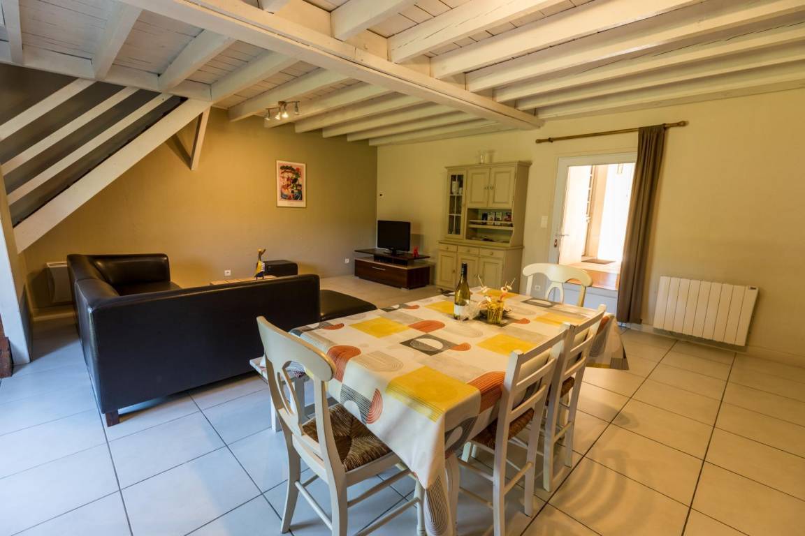 „Le gîte est situé dans un cadre très agréable. Il manque un WC à l'étage, et les deux lits situés dans la mezzanine sont des couchages, mais pas une chambre (pas de séparation).Nous étions deux couples plus une personne.“