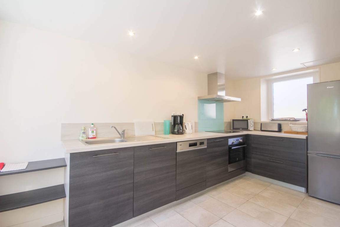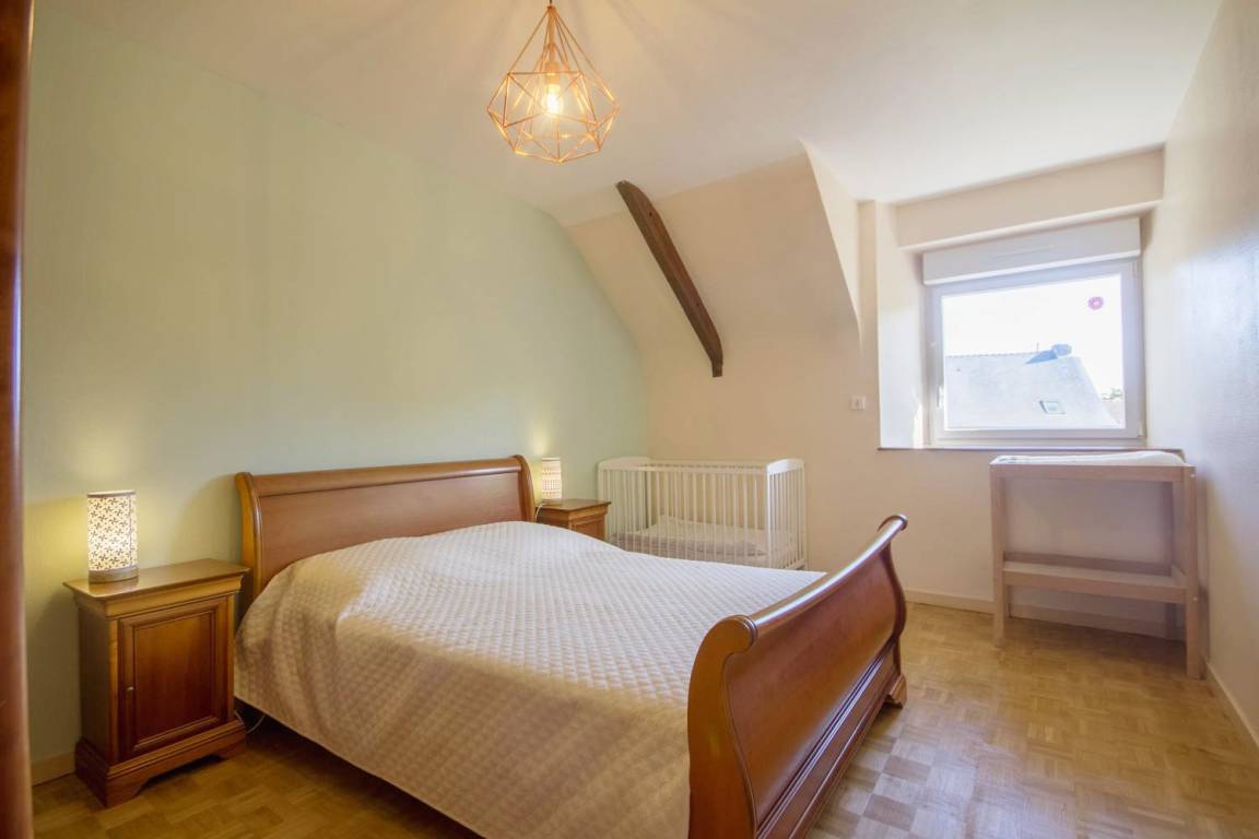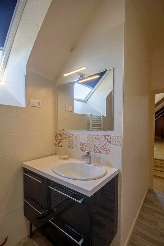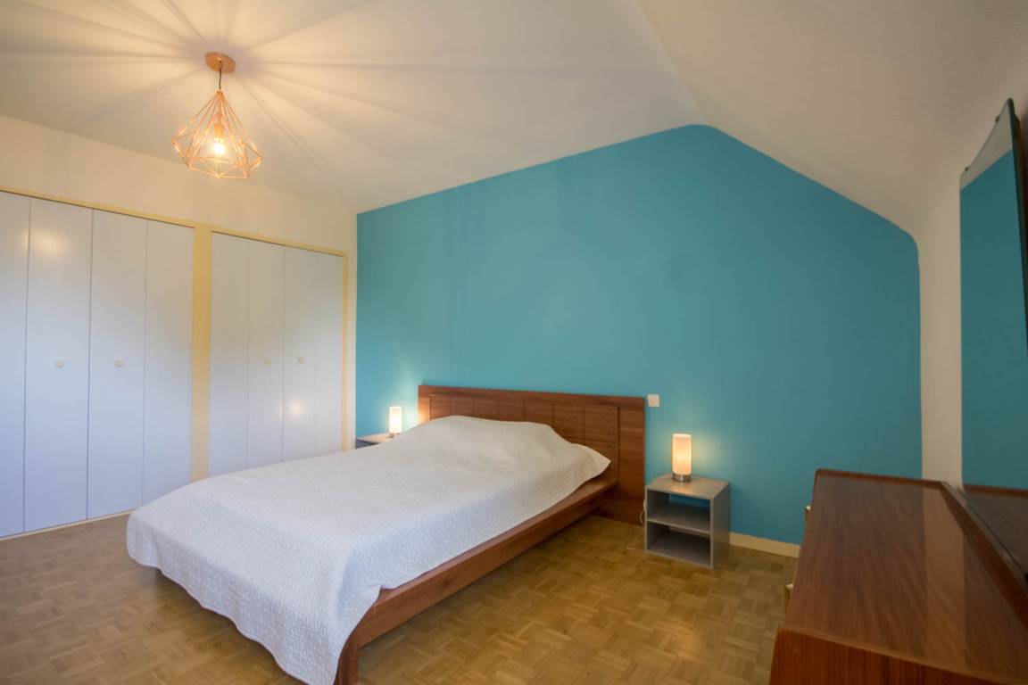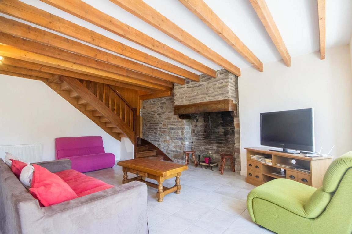 Im Erdgeschoss öffnet sich die Gîte zu einem großen Wohnzimmer mit Leseecke, dann zu einem hellen Wohnzimmer und einer voll ausgestatteten Küche. Auf dieser Ebene finden Sie auch: ein Schlafzimmer (1 Bett 160), ein Duschbad, eine separate Toilette mit Waschbecken und eine Waschküche. Obergeschoss: 3 Schlafzimmer, eines mit 1 Bett 140 und 1 Bett 90, das zweite mit 1 Bett 140 und das letzte mit 3 Betten 90, darunter 1 Etagenbett und 1 Bett 80 (Möglichkeit, das 80-Bett in ein 160-Bett umzuwandeln), dann eine separate Toilette und ein Badezimmer.