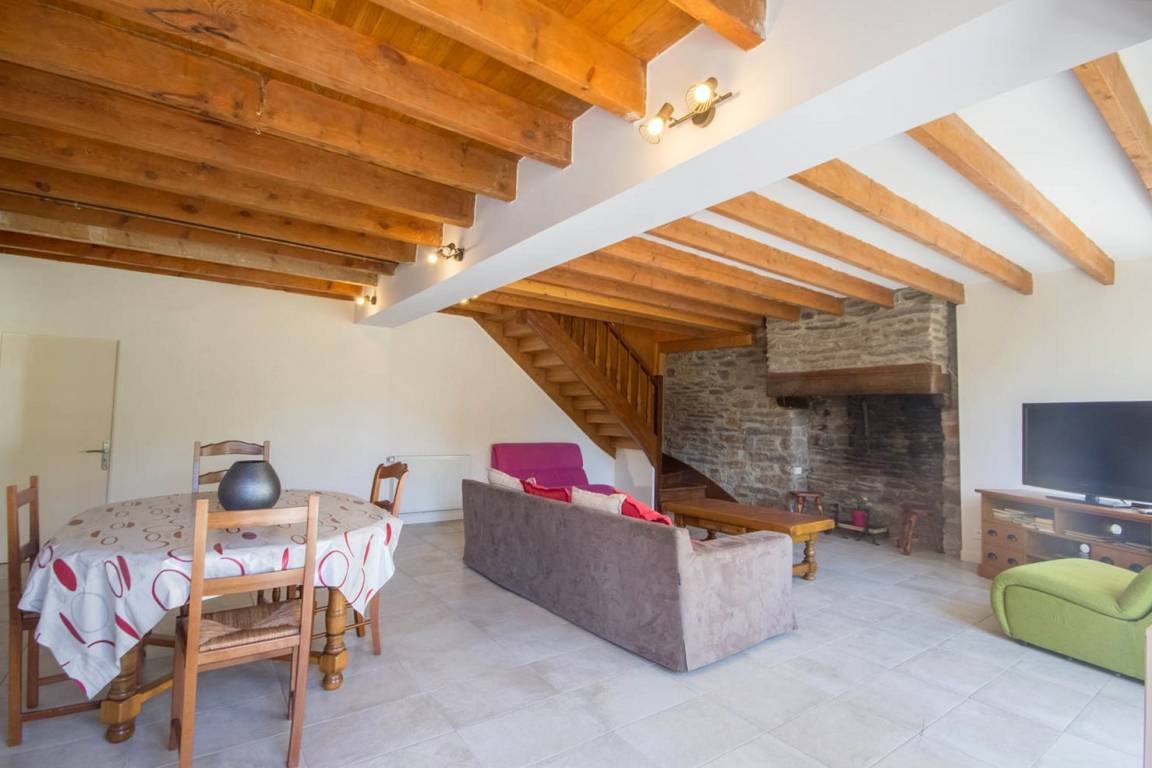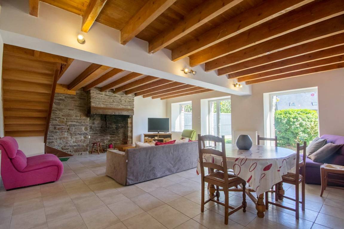 Draußen genießen Sie eine Steinterrasse und einen großen umzäunten Garten. Privater Parkplatz für 4 Autos draußen (entlang des Ferienhauses). Nebenkosten, Tischwäsche vorhanden. Angrenzend an das Haus der Eigentümer und in der Nähe von Gîte 56G324 (für 8 Personen). Hunde auf Anfrage akzeptiert. Cottage wird dekoriert