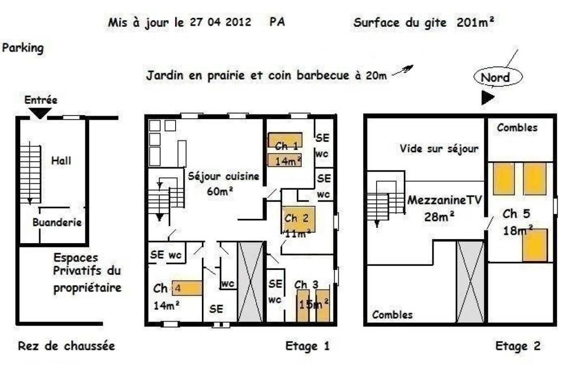 Ferienhaus auf 3 Ebenen: ERDGESCHOSS, Lobby und Wäscherei mit ER und SL, Schränke. Im Obergeschoss 1 großes Wohnzimmer mit Küche ausgestattete voll bar (LV, MO, kombinierte F Einfrieren, Geschirrspüler und Backofen-Platten), 4 Zimmer mit angrenzendem SE - WC, 7 Betten 1pers und 1 Bett für 2 Personen. Stock 2, Mezzanin mit Sitzecke, TV auf Anfrage, großer Raum Thema \"malgache\" mit 3 Betten 2 Personen auf der Bank vor Ort. " Paket Zentralheizung (19) € 210/s Nachfrage der privaten Haushalte Bestimmung 130 bei der Ankunft bezahlt. Möglichkeit der Verlegung der Zehner und Hängematten (nicht mitgeliefert) in das Naturgebiet der Hütte, ausschließlich für die Bewohner.
