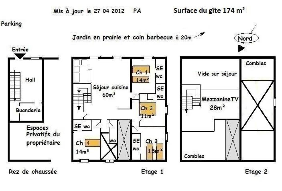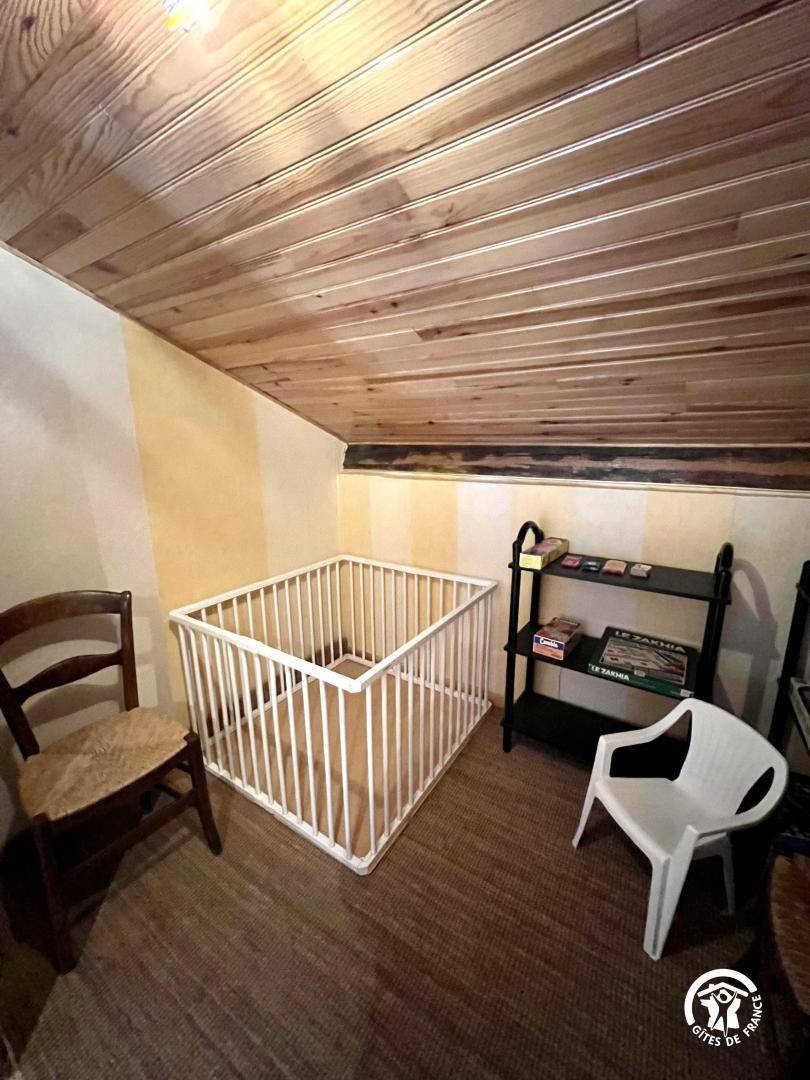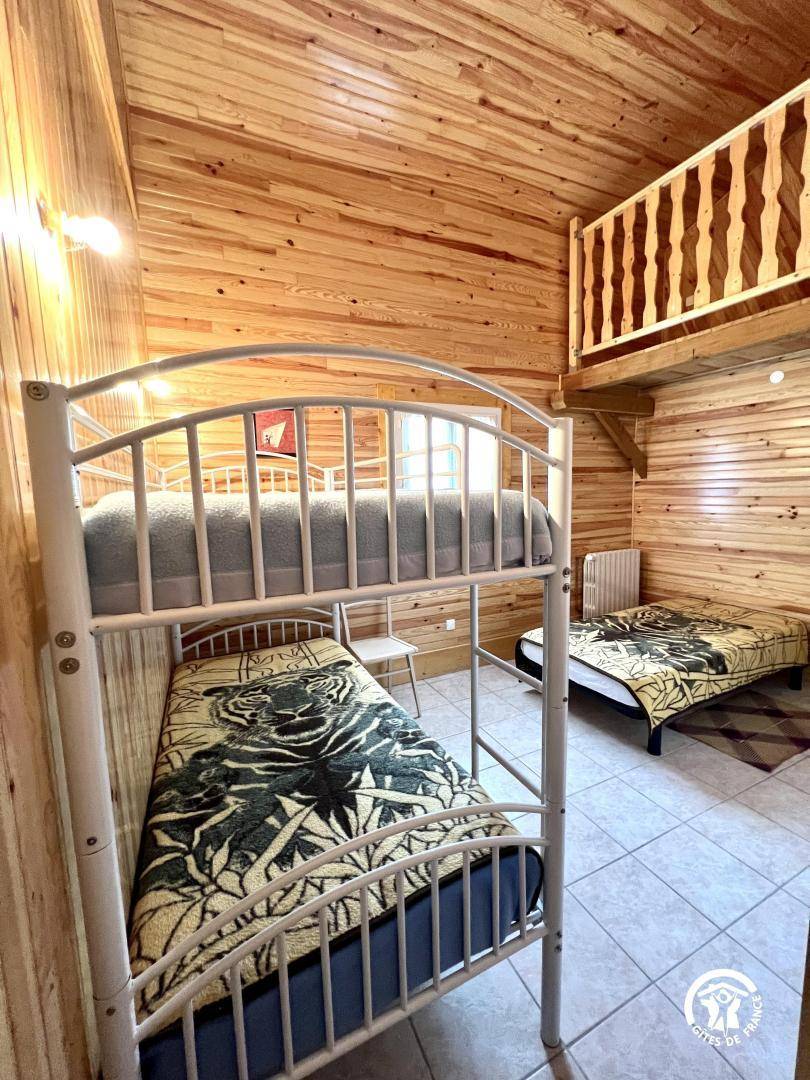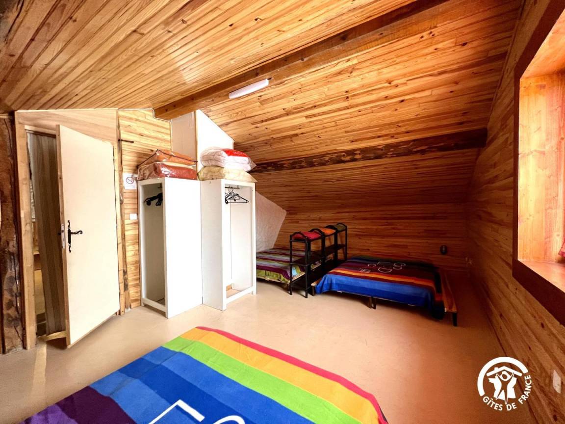 Ferienhaus auf 3 Ebenen: ERDGESCHOSS, Lobby und Wäscherei mit ER und SL, Schränke. Im Obergeschoss 1 großes Wohnzimmer mit Küche ausgestattete voll bar (LV, MO, kombinierte F Einfrieren, Geschirrspüler und Backofen-Platten), 4 Zimmer mit angrenzendem SE - WC, 7 Betten 1pers und 1 Bett für 2 Personen. Stock 2, Mezzanin mit Sitzecke, TV auf Anfrage, großer Raum Thema \"malgache\" mit 3 Betten 2 Personen auf der Bank vor Ort. " Paket Zentralheizung (19) € 210/s Nachfrage der privaten Haushalte Bestimmung 130 bei der Ankunft bezahlt. Möglichkeit der Verlegung der Zehner und Hängematten (nicht mitgeliefert) in das Naturgebiet der Hütte, ausschließlich für die Bewohner.