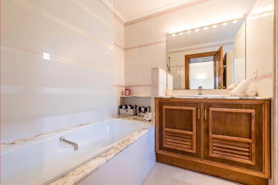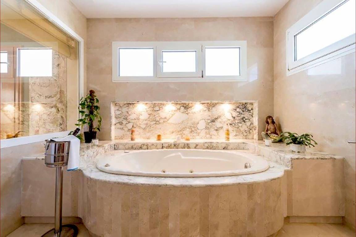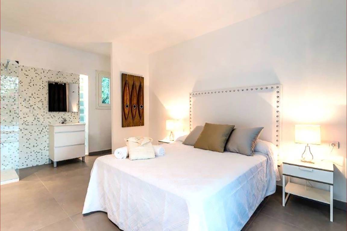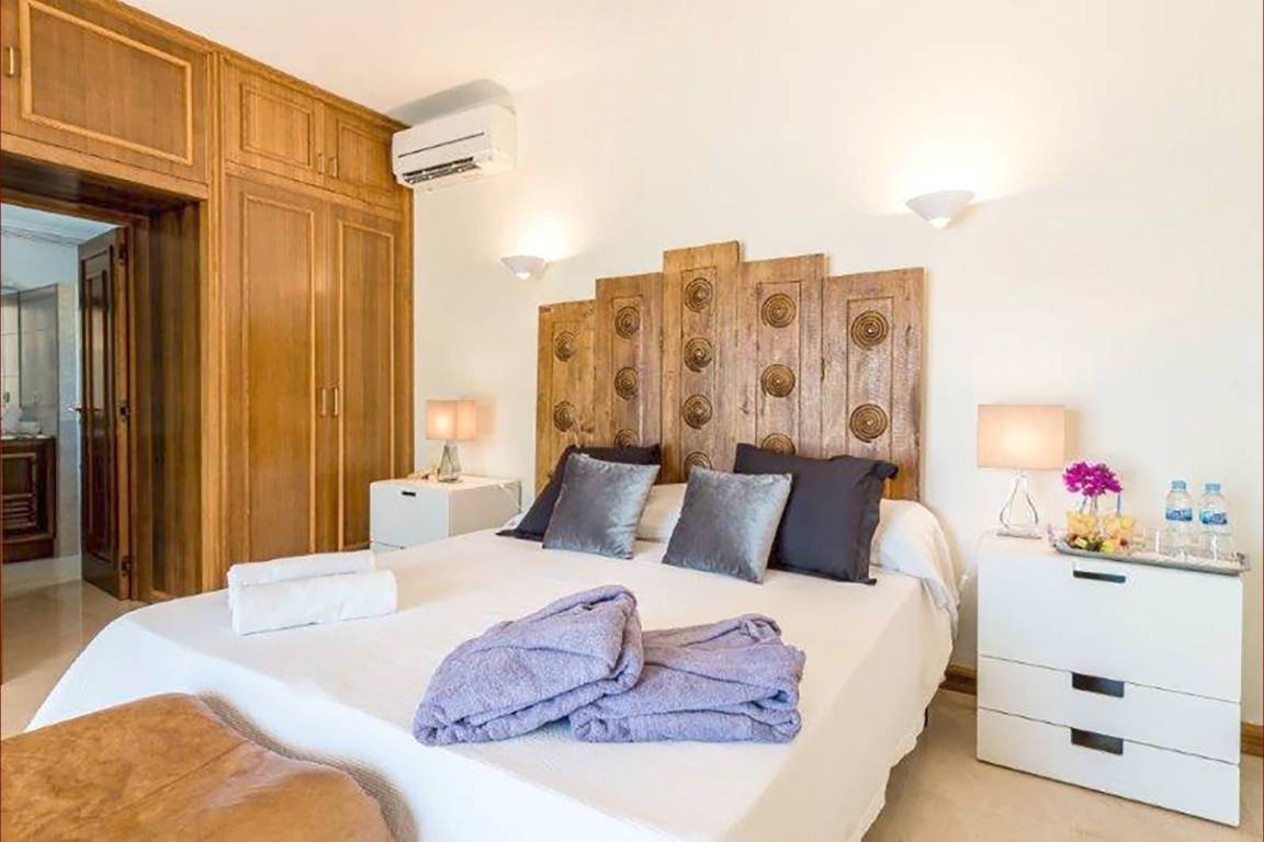 Die Villa bietet Platz für bis zu 13 Gäste und verfügt über 6 Schlafzimmer und 7 Bäder auf mehreren Geschossen. Die Schlafbereiche sind großzügig über die verschiedenen Ebenen der Villa verteilt und bieten jeweils eine ruhige Umgebung. Die Bäder sind elegant ausgestattet und bedienen die unterschiedlichen Schlafzimmerkonfigurationen auf den verschiedenen Geschossebenen.