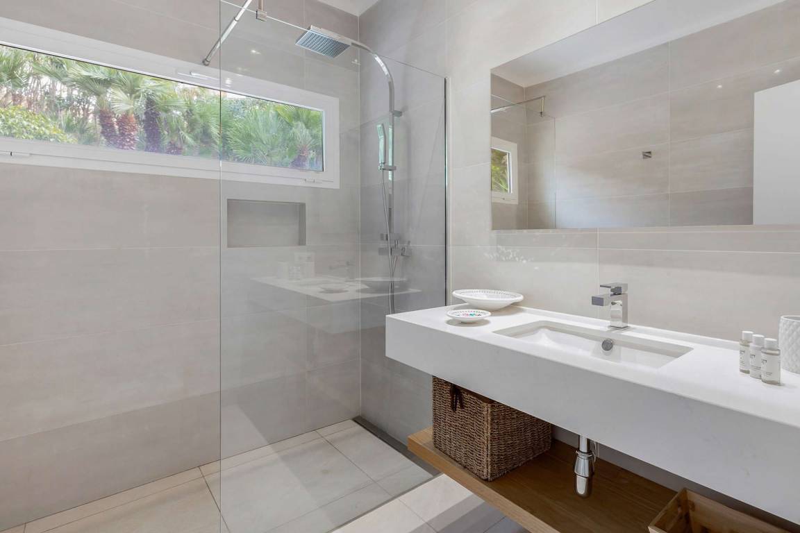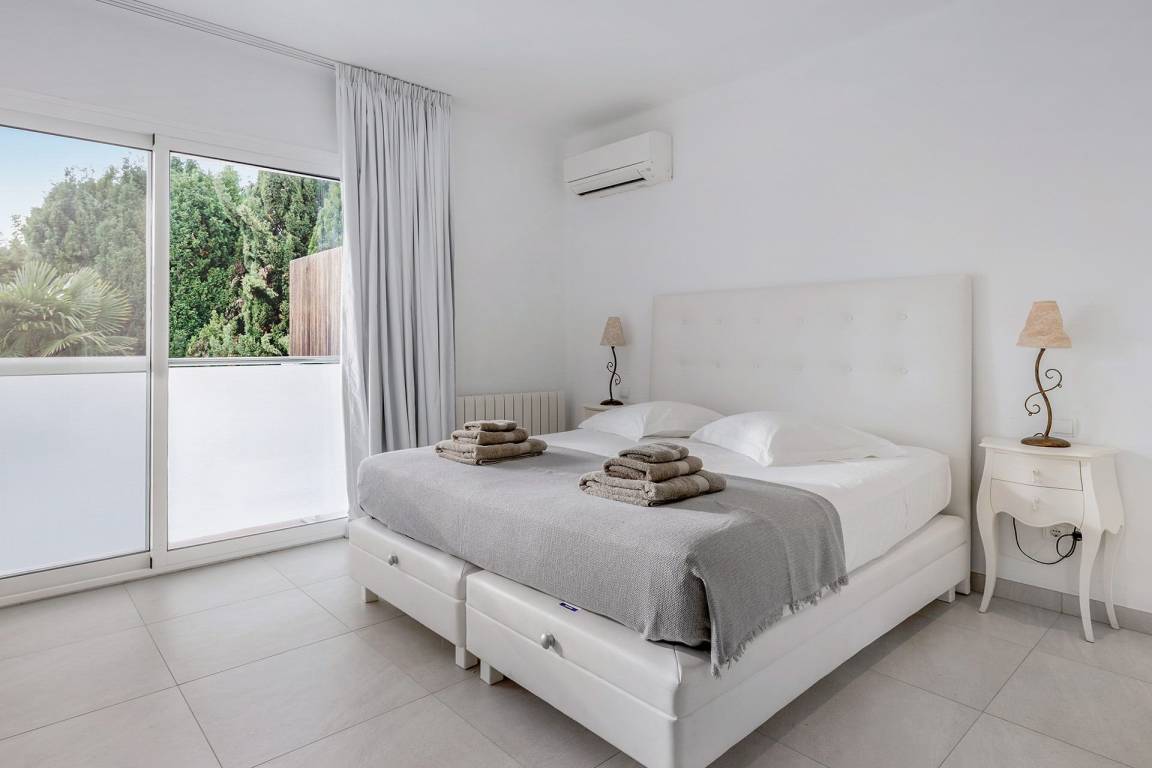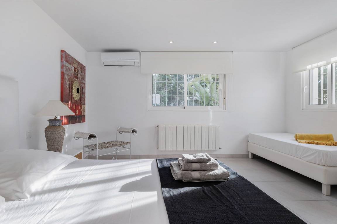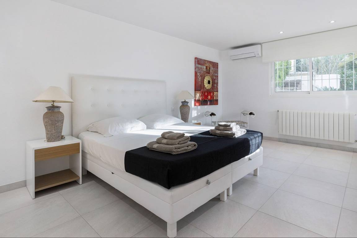Die Villa umfasst insgesamt 5 Schlafzimmer und 5 Bäder und bietet Platz für maximal 11 Gäste auf mehreren Geschossen. Die Schlafzimmer sind auf die verfügbaren Etagen verteilt und schaffen für die Gäste ein Gefühl von Privatsphäre und Komfort. Jedes Bad ist gestaltet, um das elegante Design der Villa zu ergänzen. Die offenen und großzügig proportionierten Innenräume verbinden Wohn-, Ess- und Schlafbereiche auf natürliche Weise miteinander und schaffen eine harmonische Umgebung.
