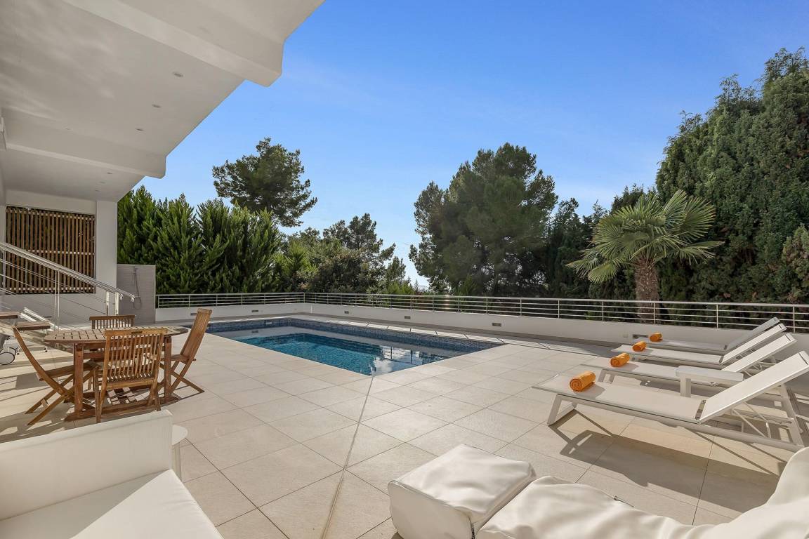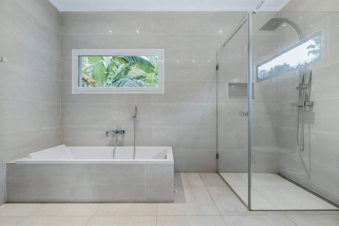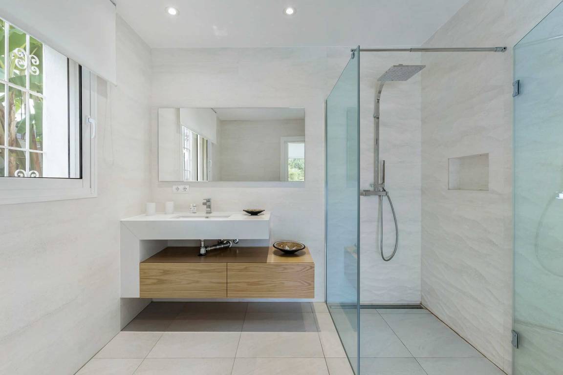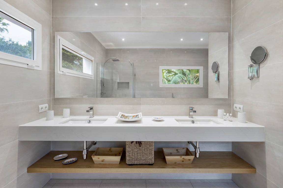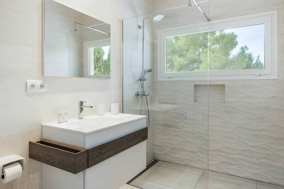 Die Villa umfasst insgesamt 5 Schlafzimmer und 5 Bäder und bietet Platz für maximal 11 Gäste auf mehreren Geschossen. Die Schlafzimmer sind auf die verfügbaren Etagen verteilt und schaffen für die Gäste ein Gefühl von Privatsphäre und Komfort. Jedes Bad ist gestaltet, um das elegante Design der Villa zu ergänzen. Die offenen und großzügig proportionierten Innenräume verbinden Wohn-, Ess- und Schlafbereiche auf natürliche Weise miteinander und schaffen eine harmonische Umgebung.