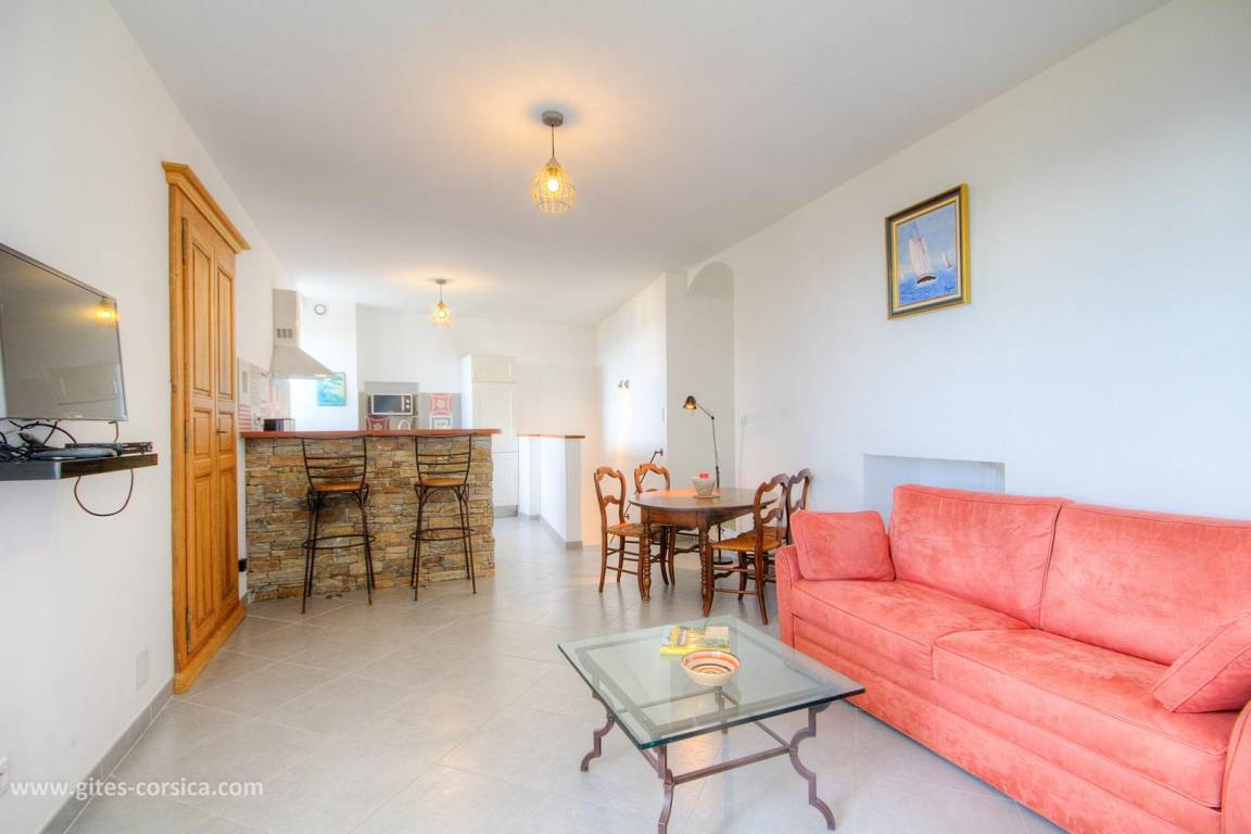 „Gite situé dans un Joli Village typique, mais: Bruyant jour et nuit. La route principale passe devant la chambre dont les fenêtres ne sont pas à double vitrage. Cette chambre est très humide. La nuit il y a le bruit de la circulation (camions, voitures, scooters) auquel il faut ajouter les aboiements des chiens en liberté à 3 heures du matin, puis un peu plus tard puis encore plus tard, etc...L'épicier situé à côté du gite est populaire, et tous les gens qui le connaissent bien le saluent de 2 ou 3 coups de klaxon, multiplié par 25 ou 30 automobiles/jour et peut être plus. Au niveau équipement du gite, lorsqu'on voyagé en avion depuis le continent, il n'y a pas de produits: Pour le lave vaisselle, pour le lave linge, pas de filtre à café, pas de "fond" d'huile pour la cuisine etc..( le gite précédent à Brando avait tout ça) L'aspirateur existe mais il est déglingué, idem pour la machine nespresso qu'il faut tenir appuyée sinon elle éjecte les capsules, idem pour le presse agrume dont le moteur accepte de tourner seulement à vide car il cale dès qu'on veux presser un fruit. Les deux serrures du gite sont très difficiles à fermer car elles manquent cruellement d'huile. J'ai voulu en acheter mais je n'en ai pas trouvé sur les 3 villages environnants (authentique) Sinon il y a une belle vue depuis la terrasse. Il y a des petites randonnées intéressantes. La commune nous a gratifié d'Un très beau feux d'artifice.“