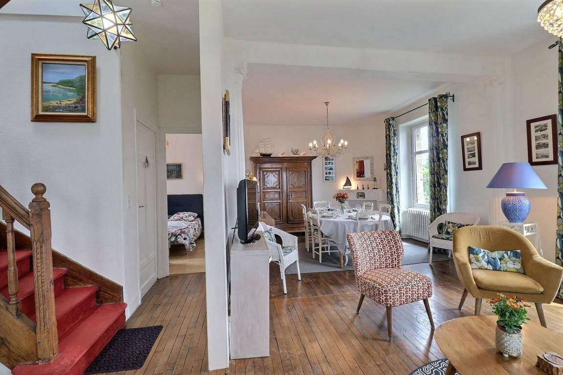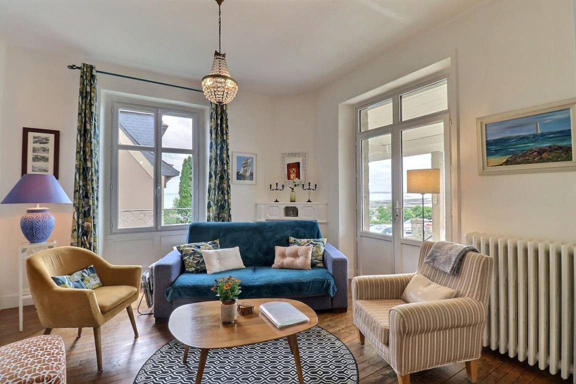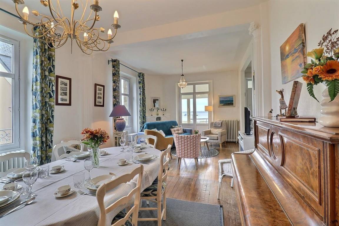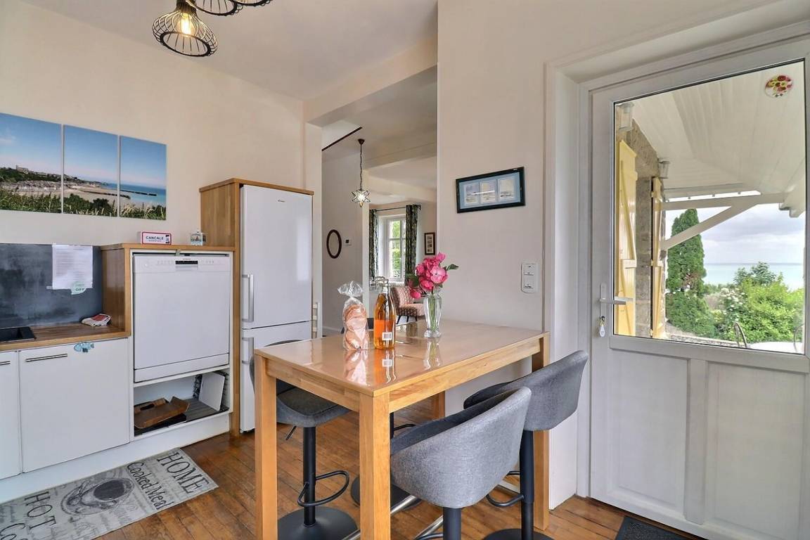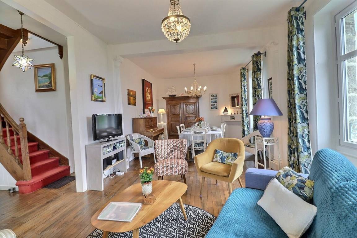 Dieses schöne, charaktervolle Haus in der Nähe des Hafens von Cancale bietet einen Blick auf das Meer und den Mont Saint-Michel.
