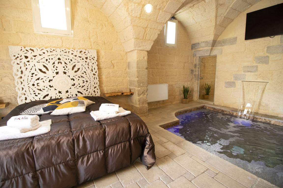 offener Raum: Heißwasser-Whirlpool im Haus, großes Doppelbett, WiFi Internet, Klimaanlage, TV, Kühlschrank, Tiefkühler.