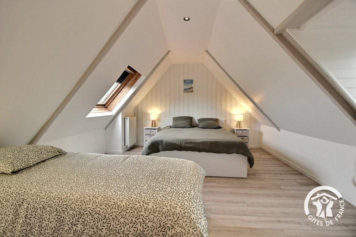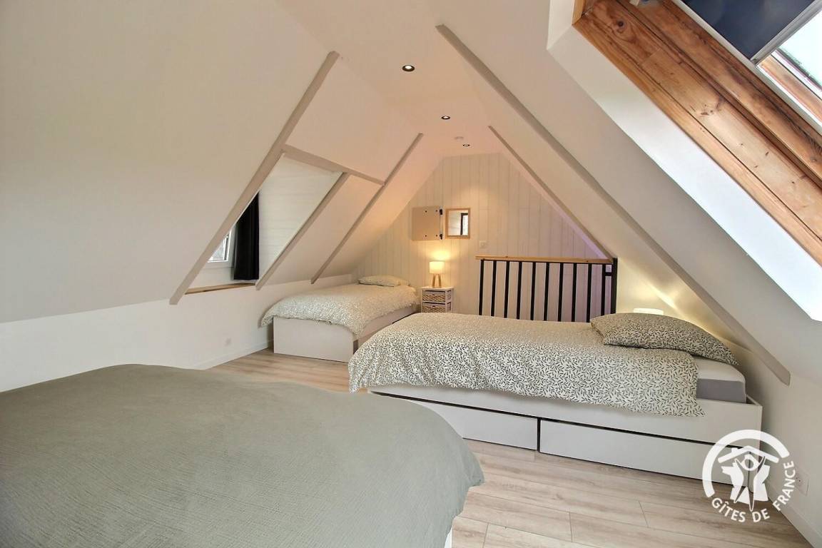 - 2 Schlafzimmer: eines mit einem Doppelbett (140 x 190 cm), das andere mit begehbarem Kleiderschrank (2 Einzelbetten (90 x 200 cm)).