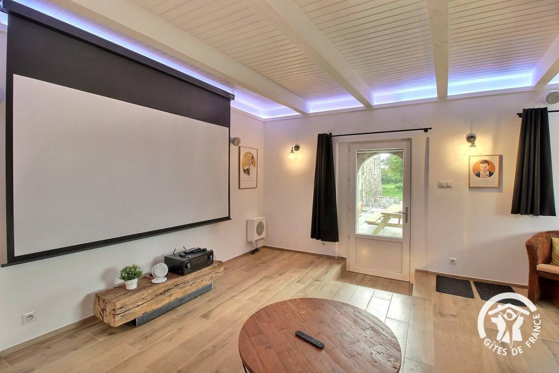 Ein Plus: Ein angrenzender Anbau beherbergt einen privaten Kinoraum mit einem Hightech-Overheadprojektor – ideal für gemeinsame Abende mit Familie oder Freunden.