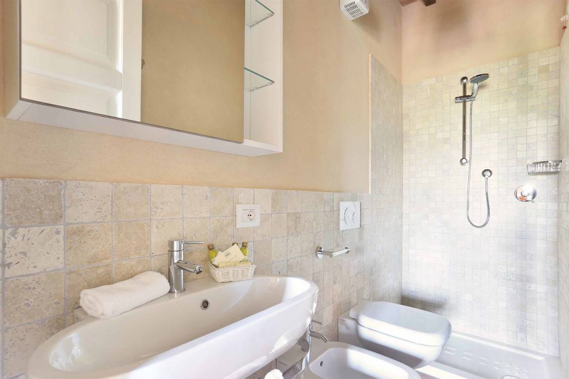Badezimmer: Waschbecken, WC, Bidet, Dusche, Bügeleisen, Waschmaschine, WiFi Internet.