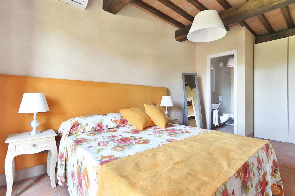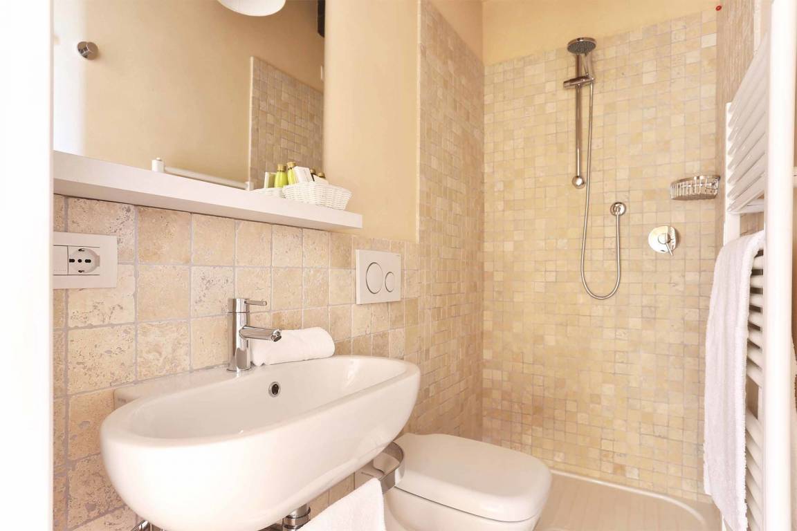 Schlafzimmer mit Bad 2: Doppelbett, WiFi Internet, Klimaanlage, Waschbecken, WC, Bidet, Dusche, Fön.
