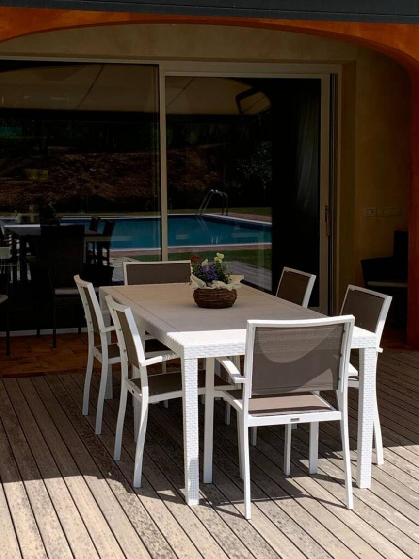 Garten: Schwimmbad (privat, Breite: 6m, Länge: 12m, Tiefe: 1.4m, Außen), WiFi Internet, Grill, Außenbereich für das Essen im Freien, Esstisch, Gartenmöbel, Terrassenmöbel, Sonnenliege.