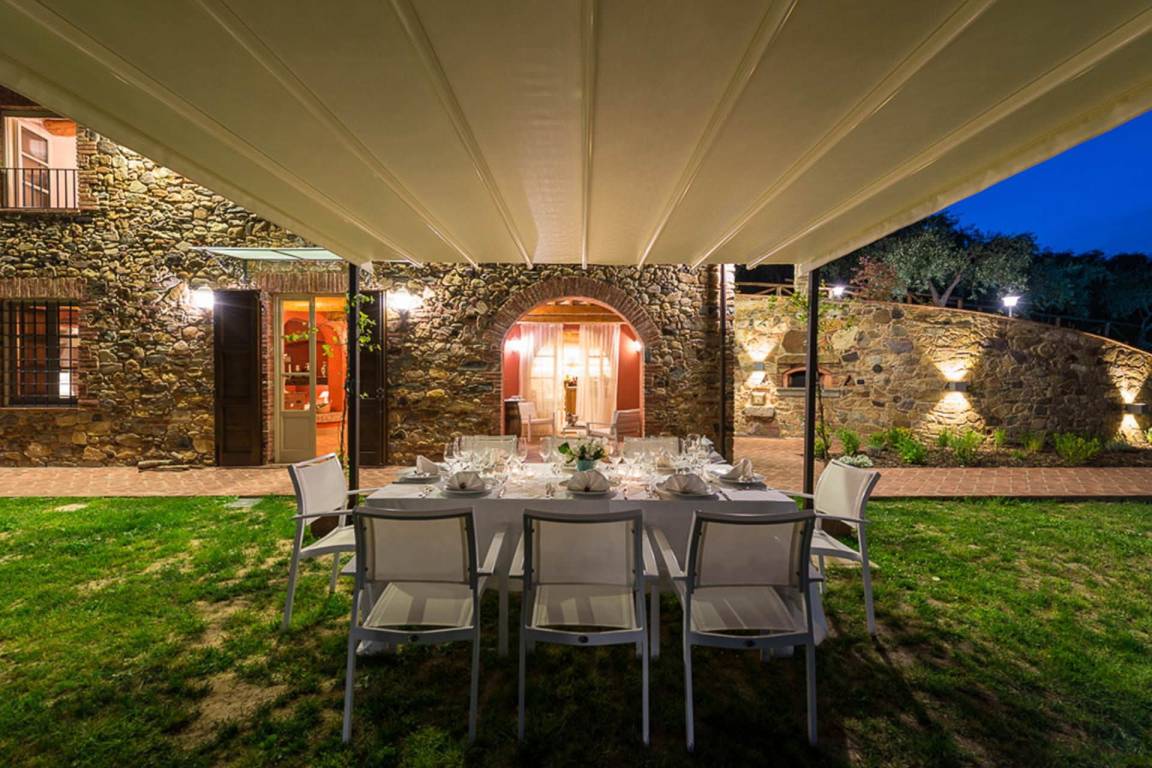 Die Küche ist mit einem vollständigen Kochbereich, einer Mikrowelle, einer Geschirrspülmaschine und einem Wasserkocher ausgestattet. Die Villa verfügt über eine Klimaanlage, eine Waschmaschine und Heizung nach tatsächlichem Verbrauch. Im Wohnbereich steht ein Satellitenfernsehen zur Verfügung; ein Kamin mit offenem Herd sorgt an kühleren Abenden für Wärme. Im Außenbereich sind ein Grill, ein Außen-Whirlpool und ein Jacuzzi-Bad im Innenbereich vorhanden. Die Villa ist von einem privaten, gepflegten Garten umgeben, der von Weinbergen und Olivenhainen umrahmt wird.
