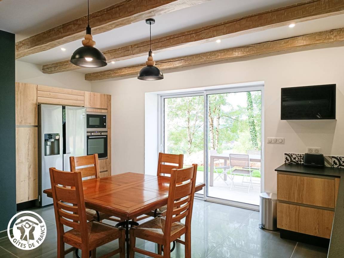 „Super accueil des hôtes, très attentionnés. Cette maison est située dans un cadre hyper agréable, au calme avec 2 terrasses dont une plein sud et l'autre ombragée avec mobiliers. La grande piscine ne nécessite aucun entretien des locataires, le robot s'en charge. Côté intérieur, la maison est entièrement climatisée par le sol, d'un très grand confort. La cuisine spacieuse possède un équipement complet et de qualité à l'image des matériaux qui ont été choisis pour réaliser la maison. Quatre grandes chambres insonorisées, dont 2 équipées avec salle de douche et WC s'y ajoute une salle de bain avec douche, baignoire, double vasque et WC. Literie de qualité. De plus une de ces chambres a sa propre porte donnant sur l'extérieur, idéale pour l indépendance d'un jeune couple ou d'un ado par exemple. WC indépendant à l'étage et au RDC. Au rez de chaussée un immense salon séjour nous a permis de passer de très belles soirées autour de jeux de société proposés ou devant le grand écran de télé. Il y a également une très belle buanderie très bien équipée. Le terrain est merveilleux avec un coin pétanque, nous avons aussi apprécié le grand abri réservé au stationnement de plusieurs voitures. Excellent point d'ancrage pour de belles balades, de magnifiques villages pittoresques à découvrir dont celui de Capdenac le haut un des plus beaux villages de France (oppidum gallo-romain devenu forteresse médiévale) à 10mn à pieds. Bref nous recommandons à 200 % ce lieu de villégiature qui mérite bien 5 épis. Tout est neuf et de qualité! Nous reviendrons dans ce petit coin de paradis!“