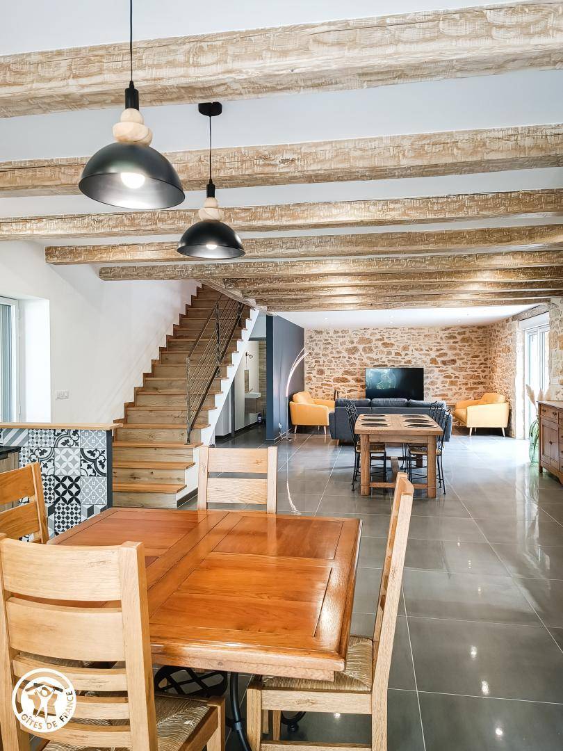 „La Grange de Bataillou est l’un de ces lieux où l’on ressent immédiatement la passion et l’exigence qui ont guidé sa rénovation. On imagine sans peine les centaines d’heures de travail nécessaires pour atteindre un tel niveau de qualité et d’harmonie. La pièce de vie et la cuisine, immenses et parfaitement équipées, offrent un confort rare et invitent à partager de vrais moments conviviaux. Les chambres, toutes spacieuses, sont pensées pour préserver l’intimité de chacun: Deux disposent de leur propre douche, tandis qu’une grande salle de bain avec baignoire et douche complète idéalement les deux autres. À l’extérieur, le charme opère tout autant. Une terrasse abritée, tournée vers un magnifique coucher de soleil et la piscine, permet de profiter pleinement du calme absolu du lieu. Une seconde terrasse, également abritée, accueille une table de ping-pong. Côté loisirs, rien ne manque: Terrain de pétanque, panier de basket, nombreux jeux de société… tout est réuni pour satisfaire petits et grands. Une adresse à conserver précieusement, tant pour la qualité du gîte que pour l’atmosphère unique qui s’en dégage.“