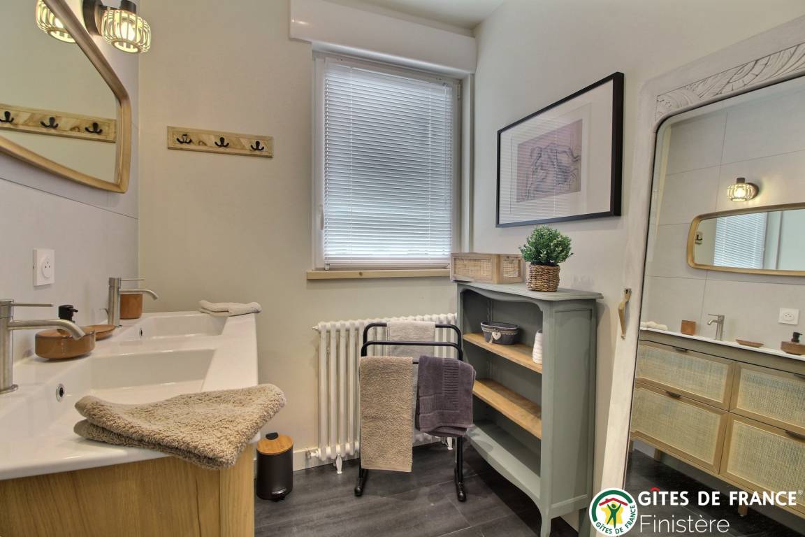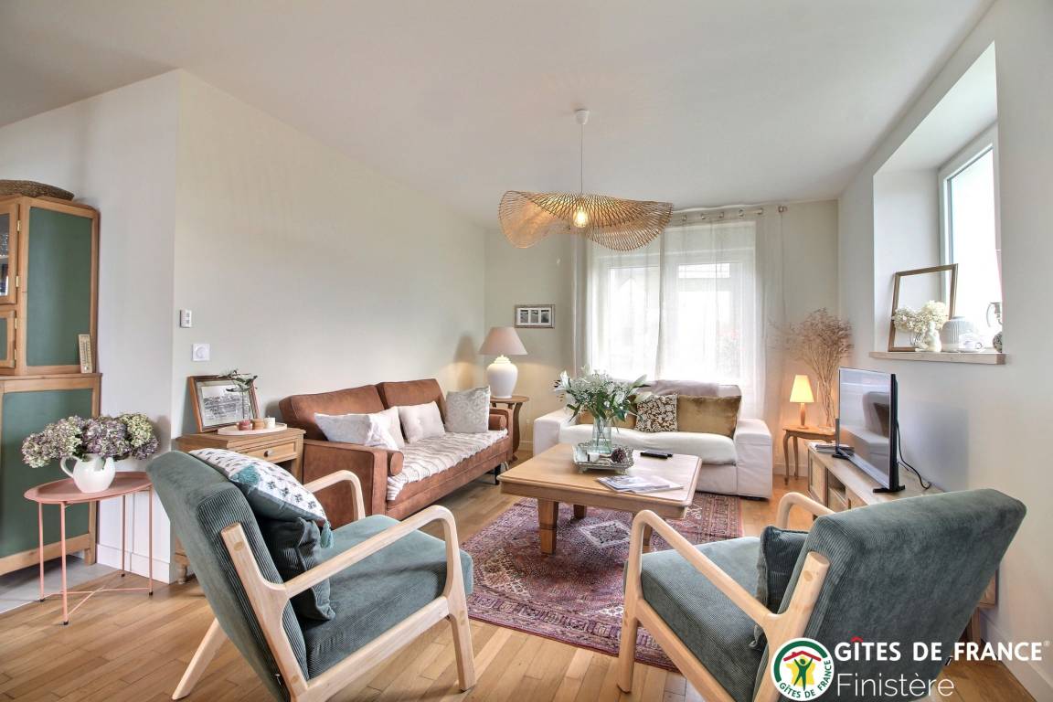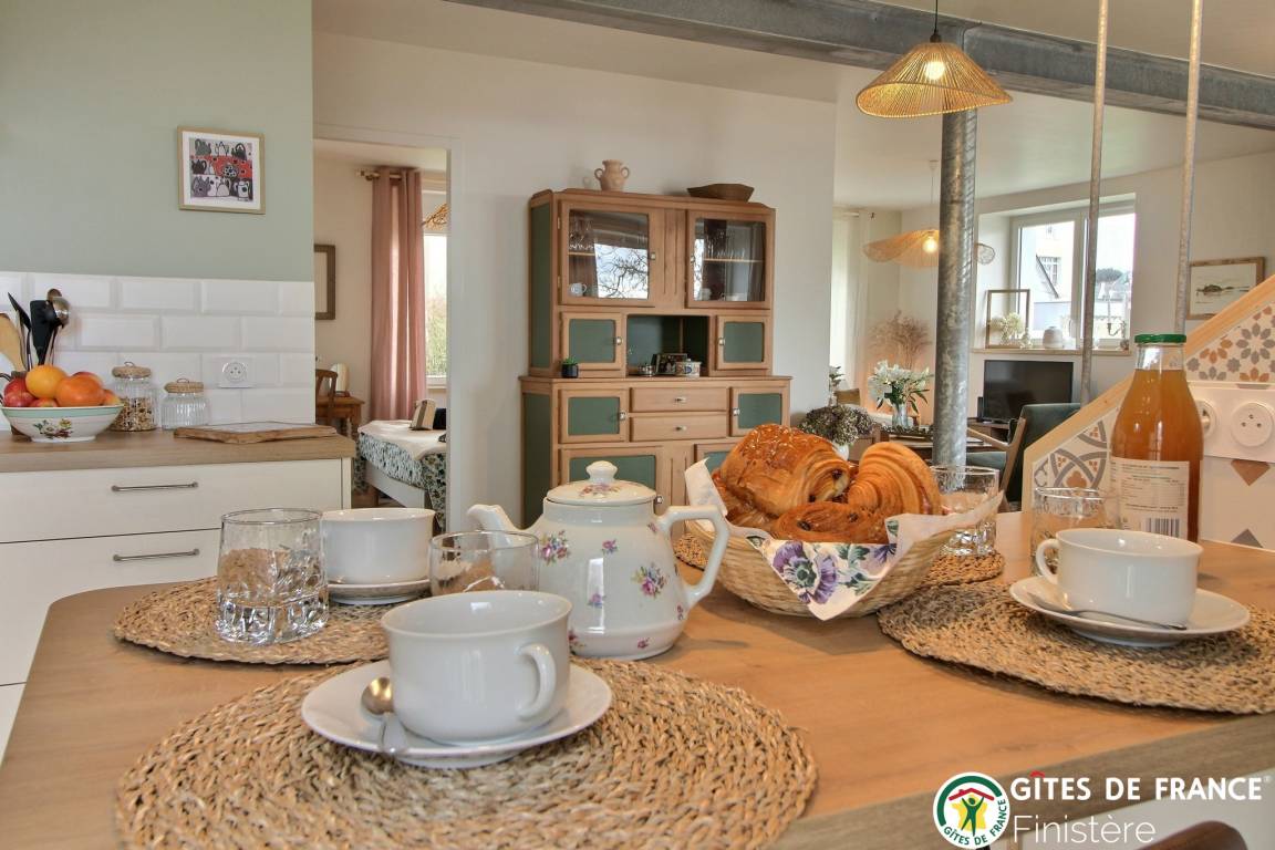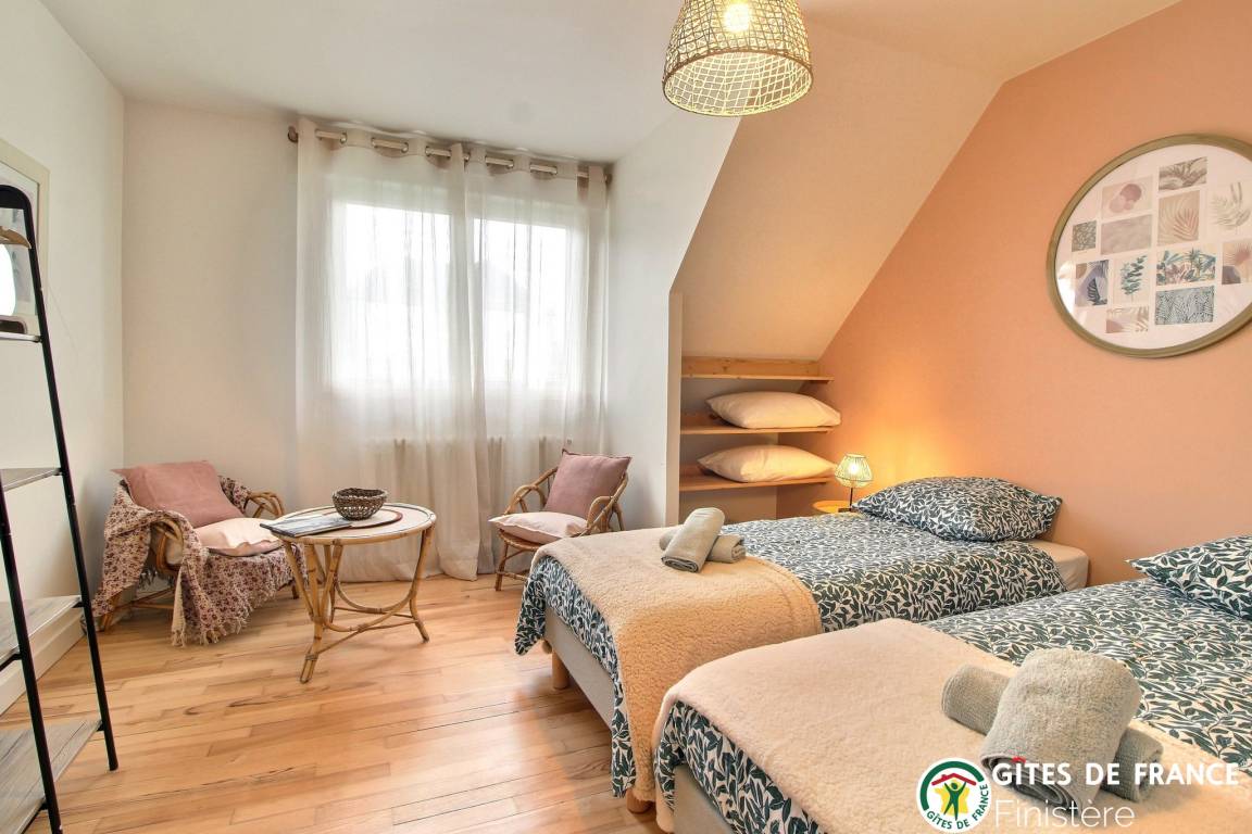 „Super accueil de la propriétaire, l' hébergement situé à 100 m de la plage est très agréable, lumineux, bien agencé, propre, très bien équipé et spacieux.Un grand merci à Marie-Jo pour le bon far breton.Il est très accessible à la plage, aux sentiers côtiers, à l île de Caillot.A recommander sans souci.“