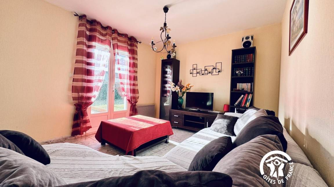 „Nous avons été accueilli par un couple très sympathique. Le séjour c'est très bien passé, la maison avec son jardin clos est un atout pour nous qui avons des enfants, ils ont pu jouer en toute sécurité dehors. Il y a un petit point à améliorer ce sont les poignées des portes intérieures qui n'ont pas l'air très solide et qu'on a peur de casser quand on ouvre les portes mais c'est vraiment un détail. Sinon environnement très calme et proche de toutes commodités en voiture 5 à 10 minutes.On vous remercie pour votre délicate attention à notre arrivée (confiture maison et bouteille de vin).“