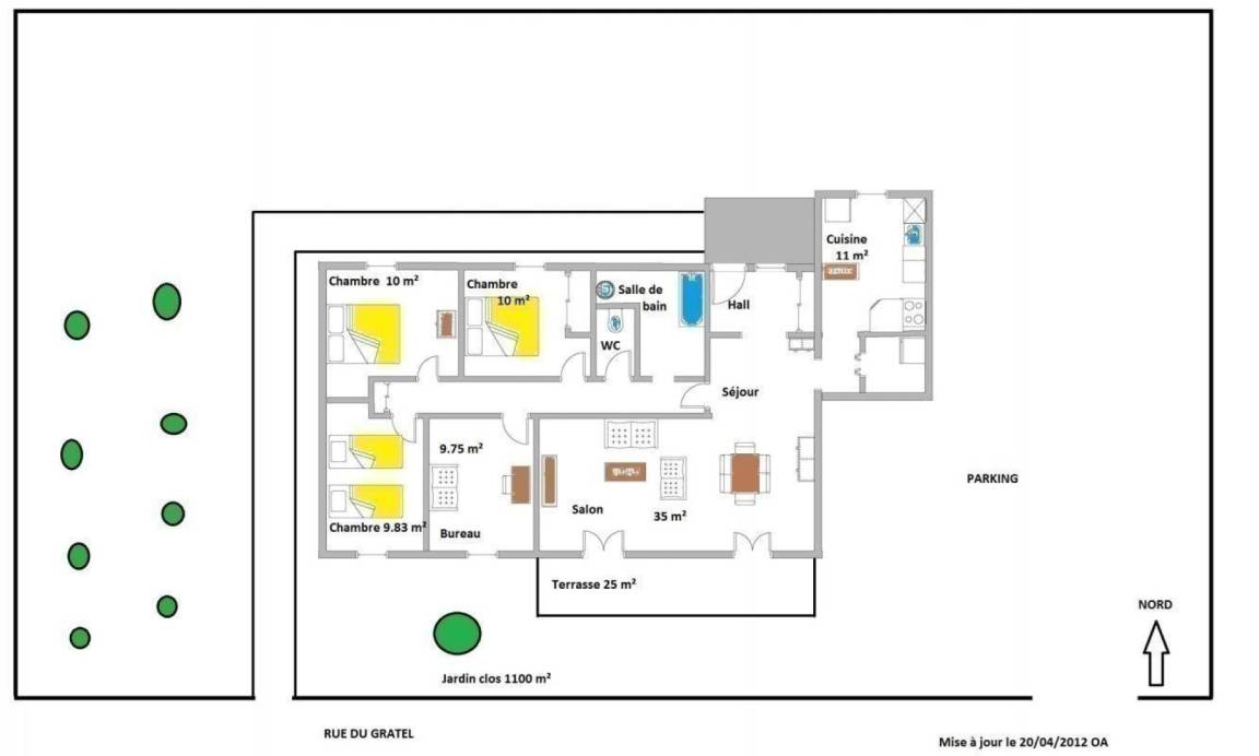 Self catering Erdgeschoss umfasst ein großes Wohnzimmer mit Ofen Holz mit Blick auf die Terrasse (25 m ²). Voll ausgestattete Küche und Speisekammer. Badezimmer, WC Indep. 3 Schlafzimmer (2 Betten 140 und 2 Betten in 90). Ein Büro. Zusätzliche elektrische Heizung.