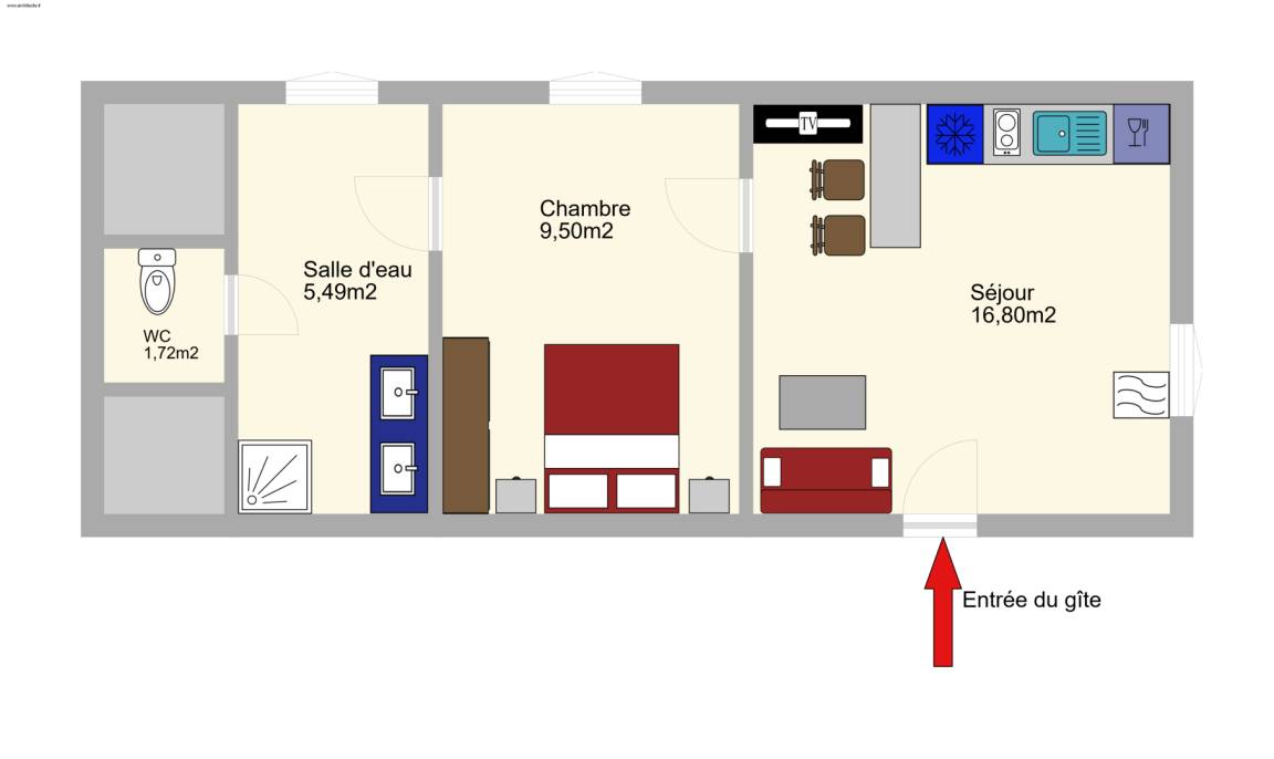 32 m² Gîte ∙ 1 Schlafzimmer ∙ 2 Gäste