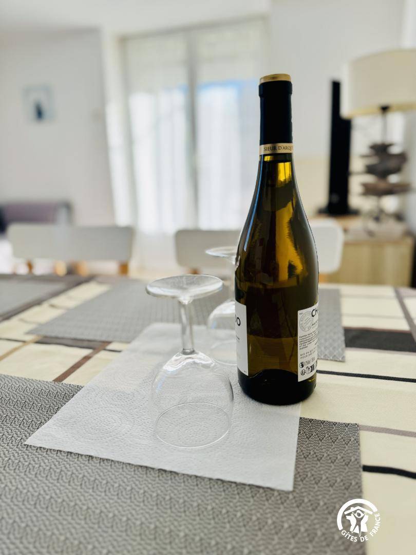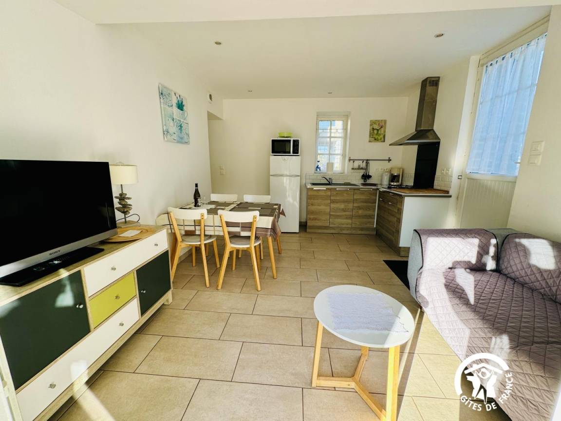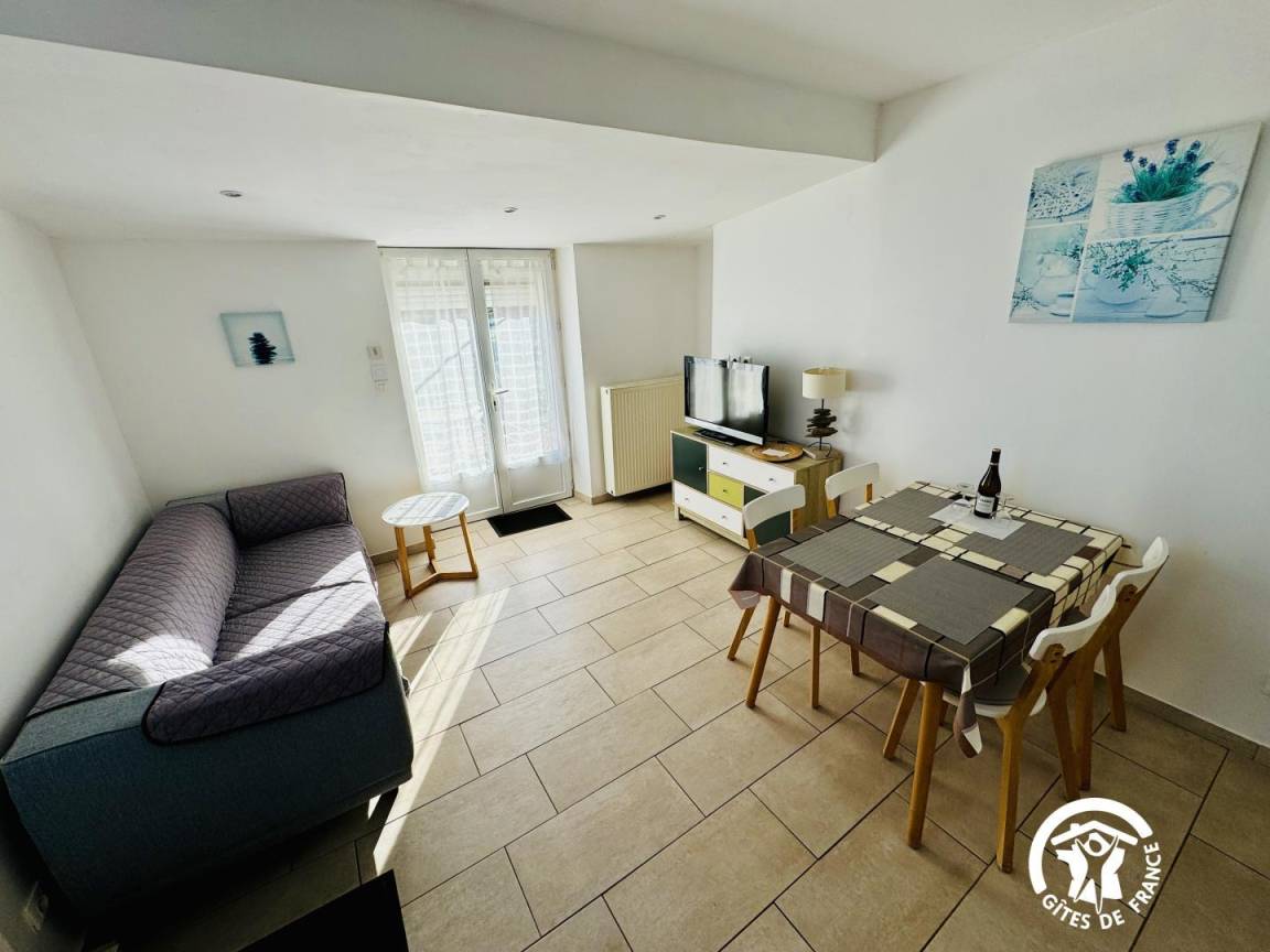 Wohnzimmer - Küche mit Blick auf 2 Terrassen von 9 m ² und 30 m ² voller Sonne, 2 Schlafzimmer (2 Betten 2 Personen. - 1 Bett 1 Person - 1 Babybett). Bad. Individuelle WC. Zentralheizung Öl 30 € pro Woche im Durchschnitt und Nebensaison. Das Haus ist gut isoliert. Kurtaxe.