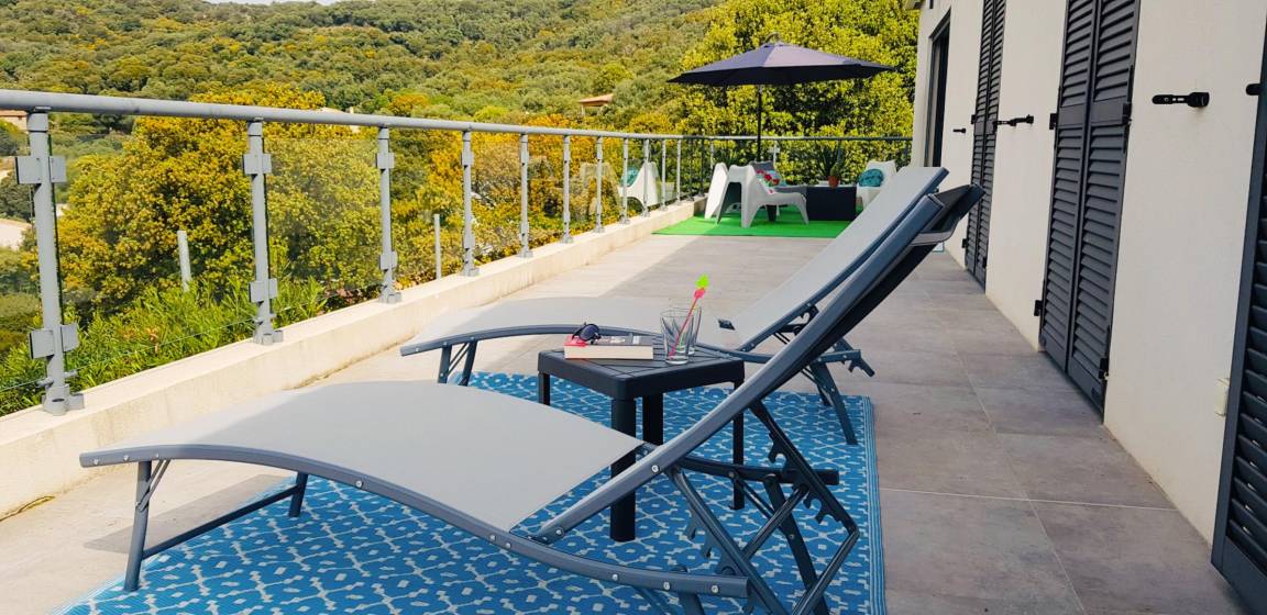 In einem Weiler auf den Höhen des Dorfes, Wohnung im Obergeschoss eines Hauses, das die Unterkunft 23581 im Erdgeschoss umfasst, setzt es sich wie folgt zusammen: