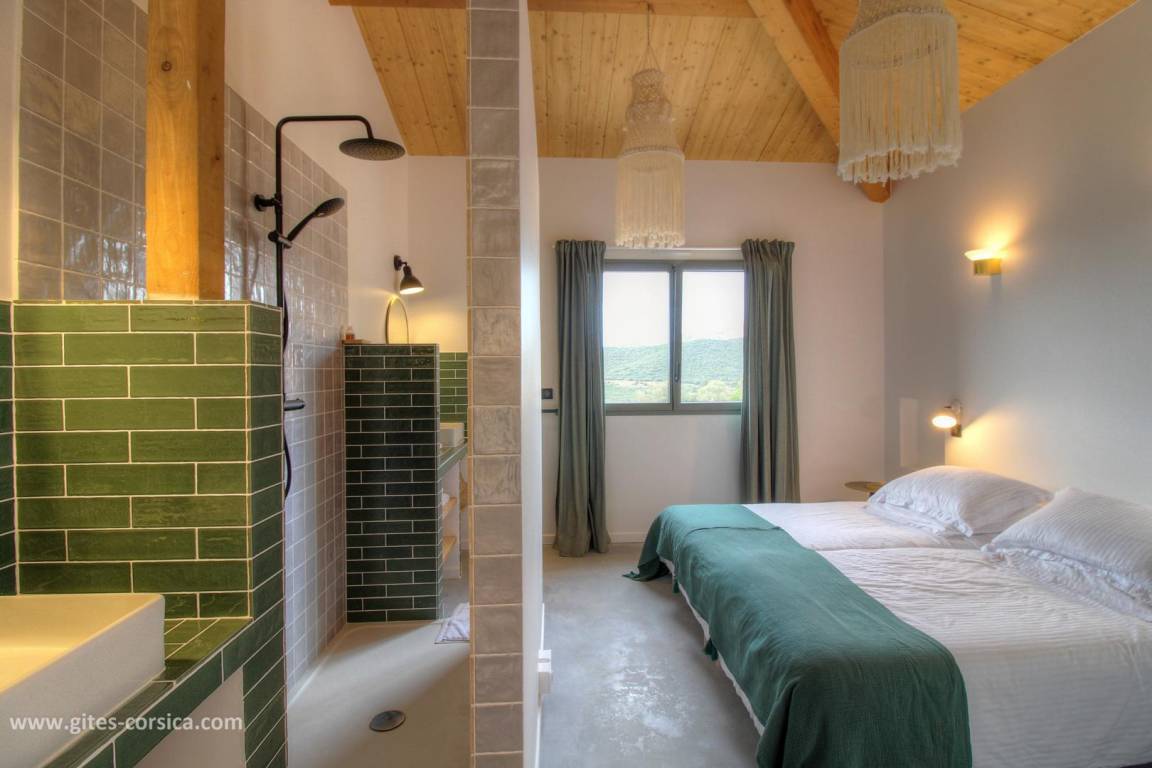 - 1 Zimmer mit 2 Betten 80x190cm, die zusammengestellt werden können, mit eigenem Badezimmer / WC und direktem Zugang zum Außenbereich.