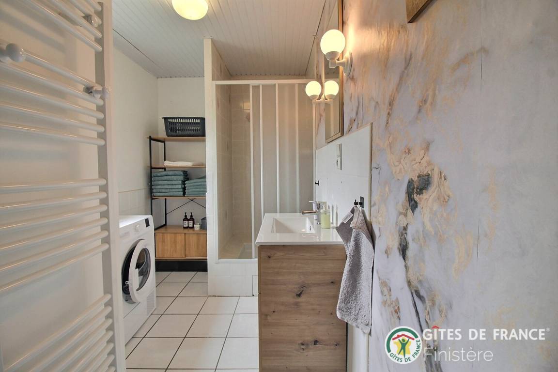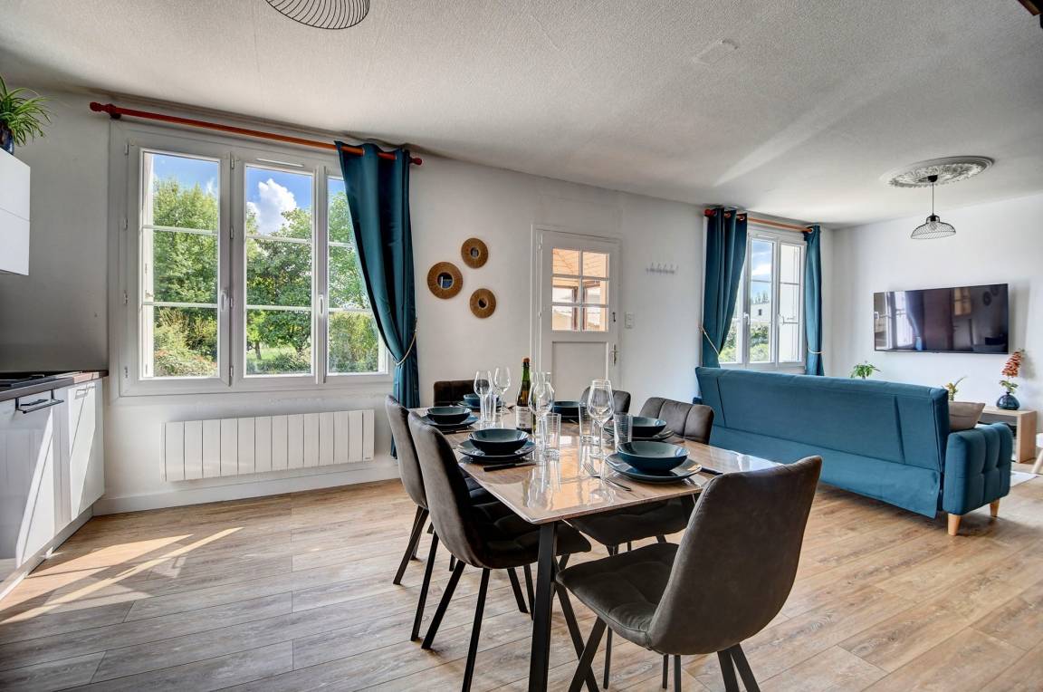 „Accueil au top, maison lumineuse et bien chauffée, dans le calme de la campagne. La literie est très bonne, la cuisine bien équipée. Seule la douche laisse à désirer, et des luminaires moins « cliniques » dans la salon auraient été appréciés. Un petit coin pour du télétravail appréciable également. Semaine tranquille et tout confort donc.“