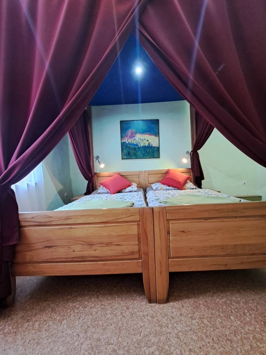 Die Wohnung bietet Platz für bis zu 4 Personen und verfügt über zwei gemütliche Schlafzimmer, eine voll ausgestattete Küche, ein Bad sowie ein separates Speisezimmer. Die Einrichtung ist inspiriert von Märchenwelten und Kunst – mit liebevollen Details, farbenfrohen Akzenten und einzigartigen Dekorationen, die Groß und Klein verzaubern.