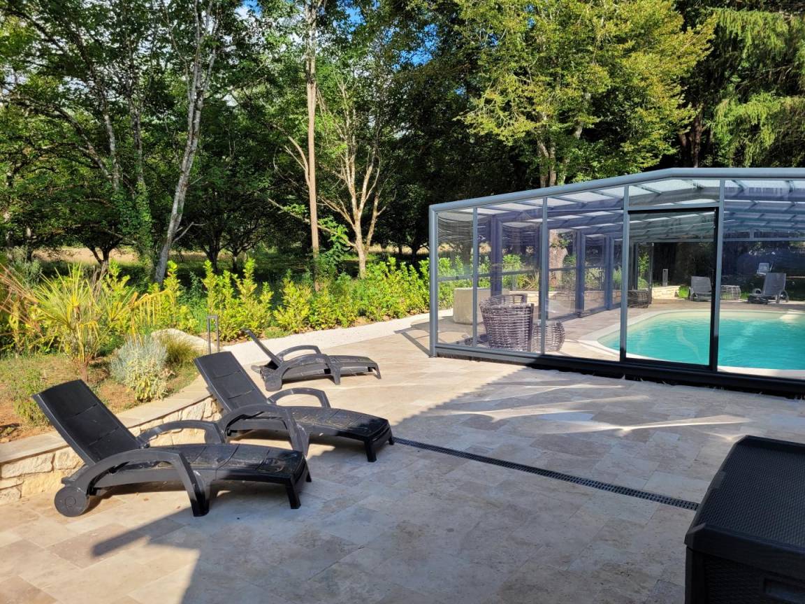 „Maison très confortable et spacieuse, avec 2 parties qui permettent de bien s'isoler. Les 2 cuisines nous ont bien rendu service. Les lits étaient faits à notre arrivée et c'était très agréable. Nous remercions encore Adrien pour son accueil et sa réactivité face à nos demandes. Le seul petit bémol est la piscine que l'on doit laisser couverte car se salit très rapidement à cause des arbres proches. Grand jardin avec de beaux arbres, gardant la fraicheur.“