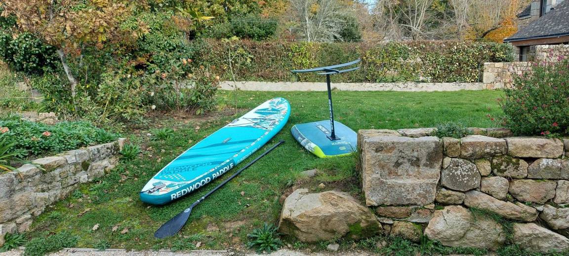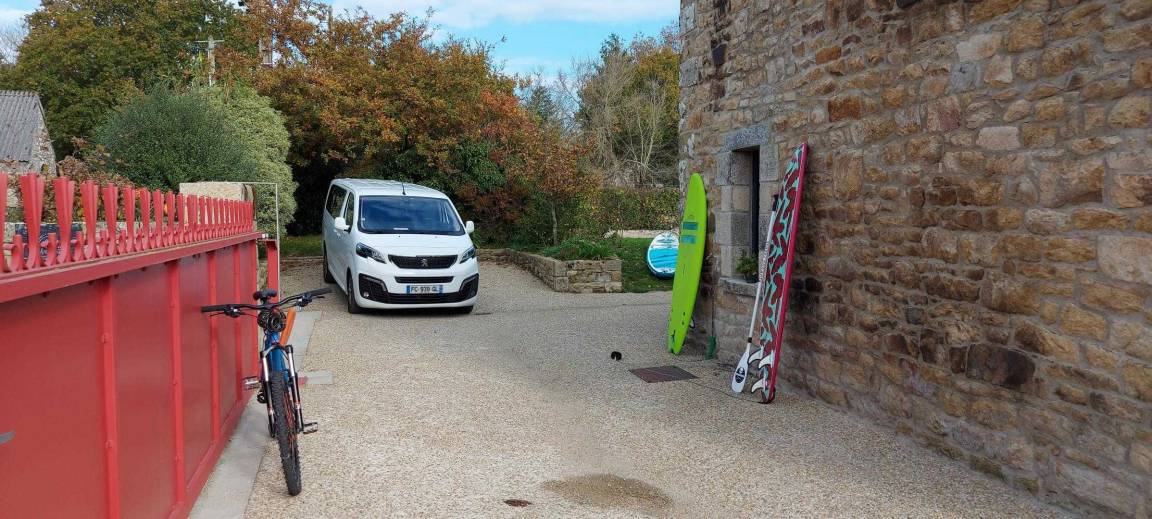 Das nach Süden ausgerichtete Haus ist von einer 50 m² großen Terrasse umgeben und verfügt über einen großen Garten und Parkplätze. Ein geschlossener und abgeschlossener Abstellraum für Fahrräder, Surfbretter und andere Gegenstände steht zur Verfügung. Wasser- und Stromanschluss sind ebenfalls vorhanden.