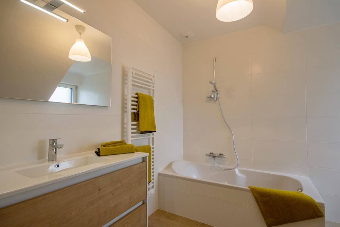Das Erdgeschoss besteht aus einem Wohnzimmer, einem Aufenthaltsraum und einer offenen Küche, einem Schlafzimmer mit einem 180 x 200 cm großen Doppelbett und eigenem Bad/WC (zugänglich für Personen mit eingeschränkter Mobilität), einer Speisekammer, einem Ankleidezimmer und einem WC.