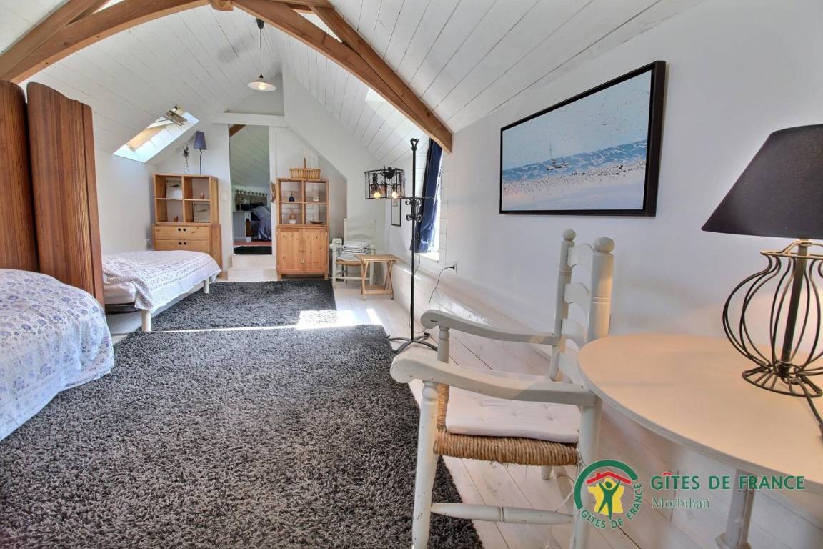 Carnac und La Trinité sur Mer sind durch ihre Strände und Yachthäfen berühmt gewordene Badeorte. Ein reiches Kulturerbe mit den Megalithen-Steinreihen, zahlreiche sportliche Freizeitmöglichkeiten und Veranstaltungen tagsüber und am Abend. Freistehendes Ferienhaus ohne Gegenüber in einem Weiler. EG: Küche/Essecke/Wohnzimmerecke (Ofen), 1 Zimmer (1 Doppelbett), 1 WC . Stockwerk: 1 Wohnzimmer (2 Einzelbetten), 1 Zimmer (1 Doppelbett), Bad mit Dusche (Wasserstrahl-Dusche). Heizung mit Holz und elektrisch . Terrasse, Gartenmöbel, Grill. Garten und kleiner Gemüsegarten, Kräuterbeet.