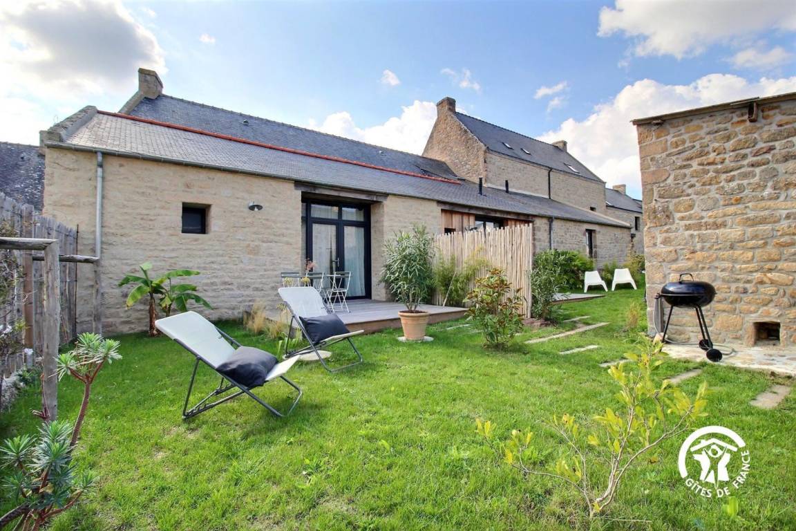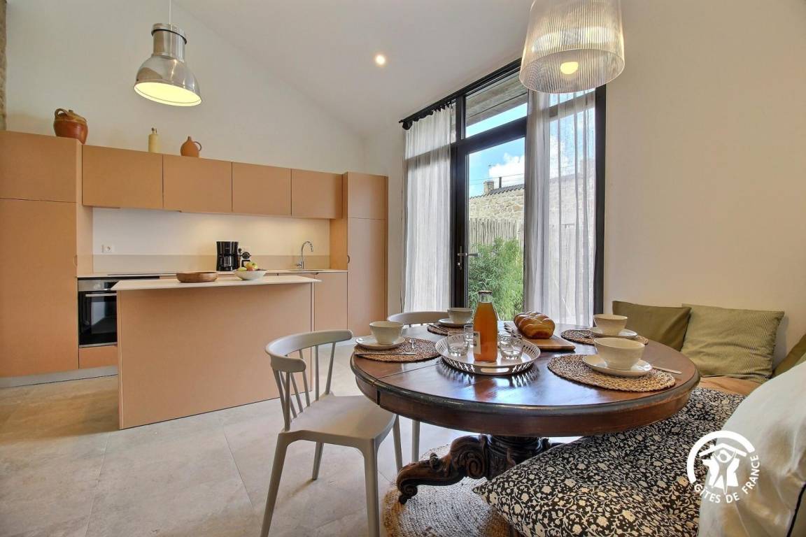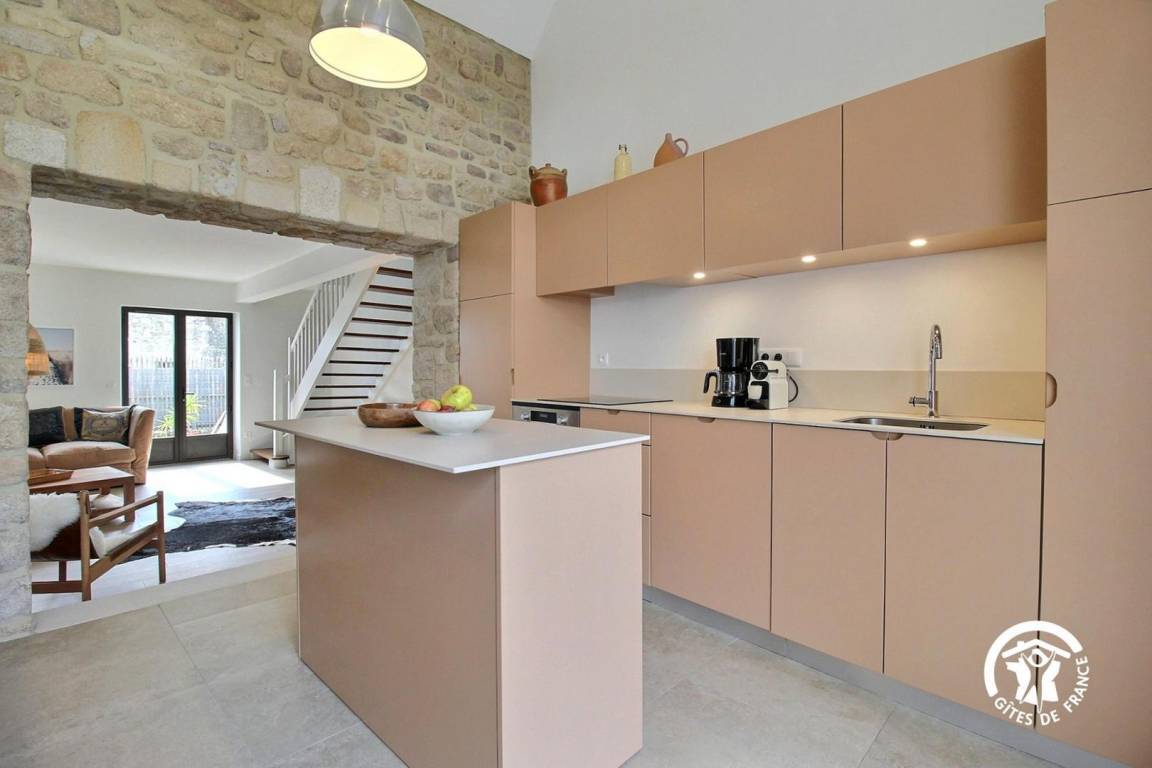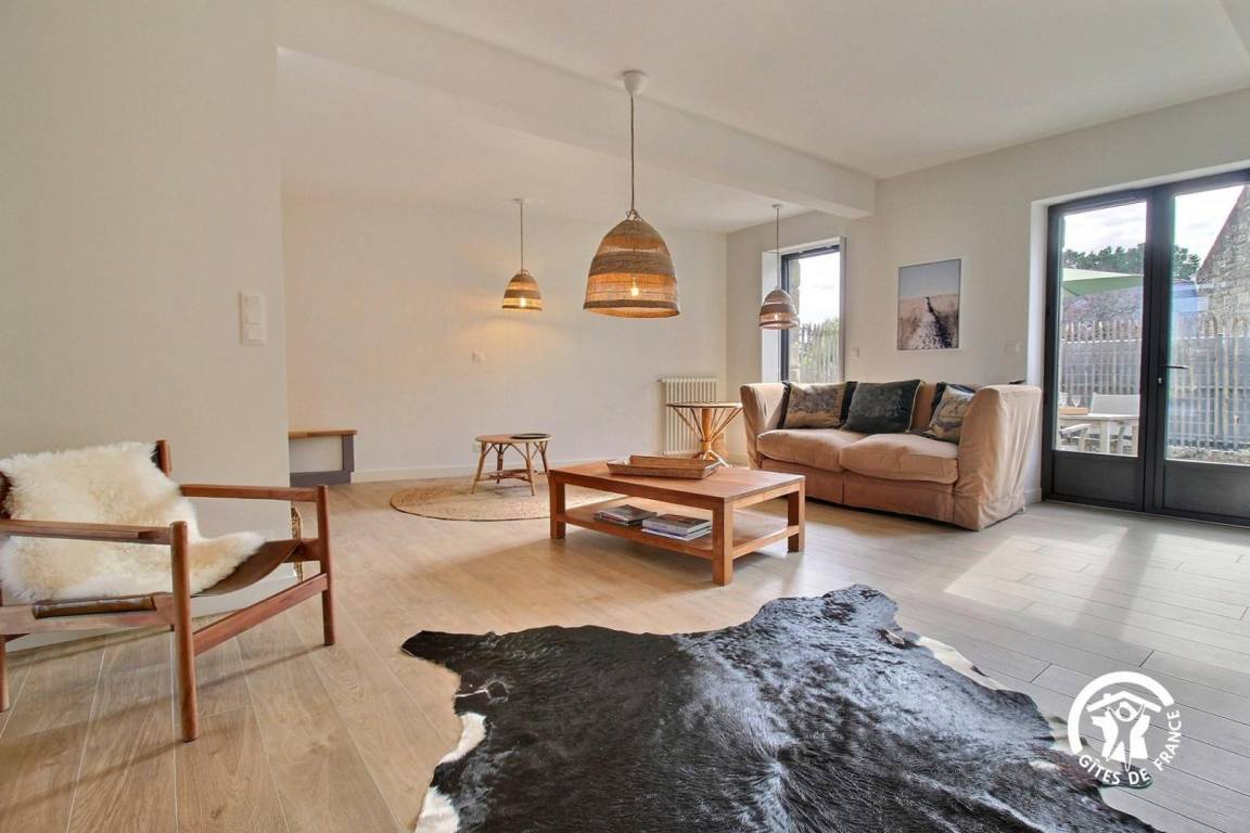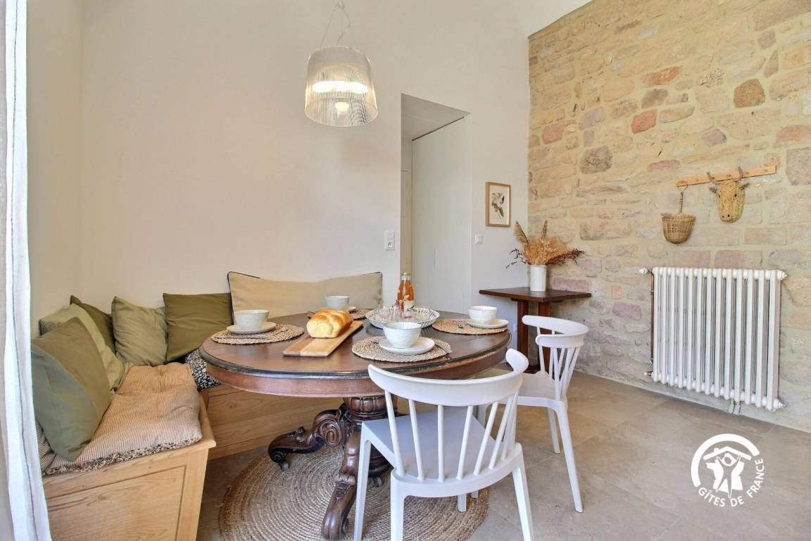 Sie wohnen in einem ehemaligen Bauernhaus, das kürzlich zu einer luxuriösen Gîte umgebaut wurde. Die hellen Farbtöne, die geschmackvolle Einrichtung und die Steinmauern schaffen eine warme und elegante Atmosphäre – ideal für einen komfortablen Urlaub.
