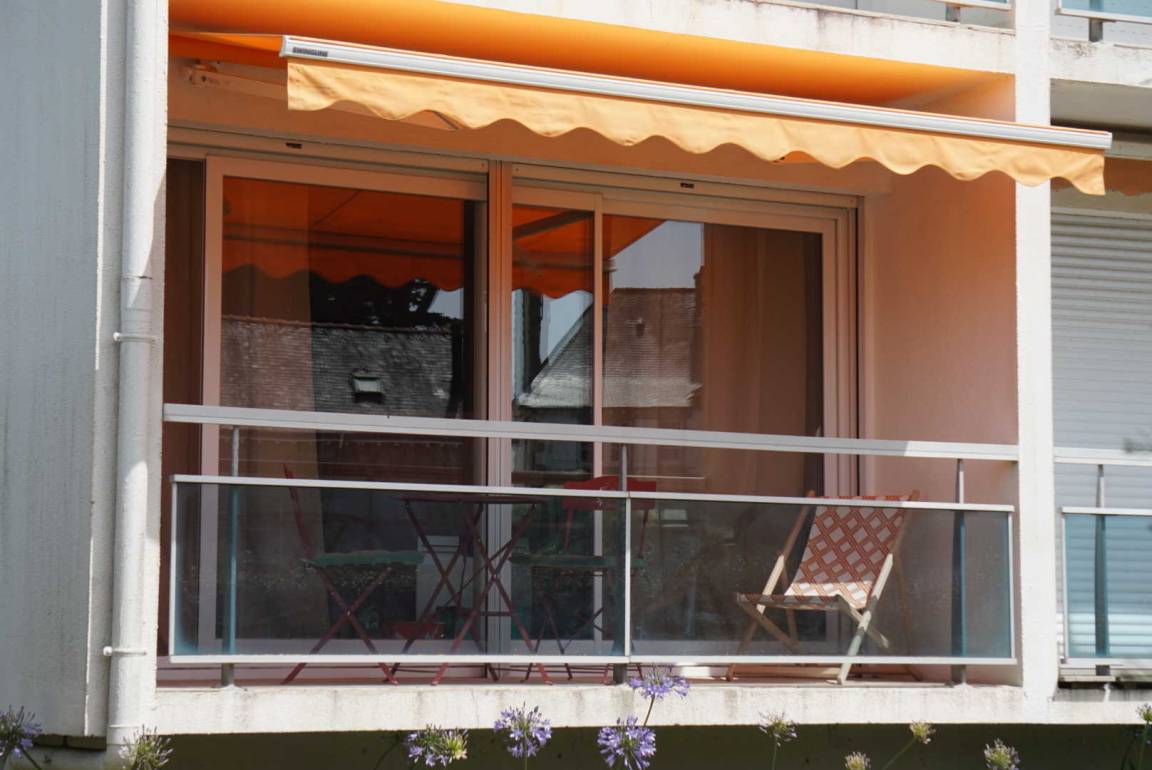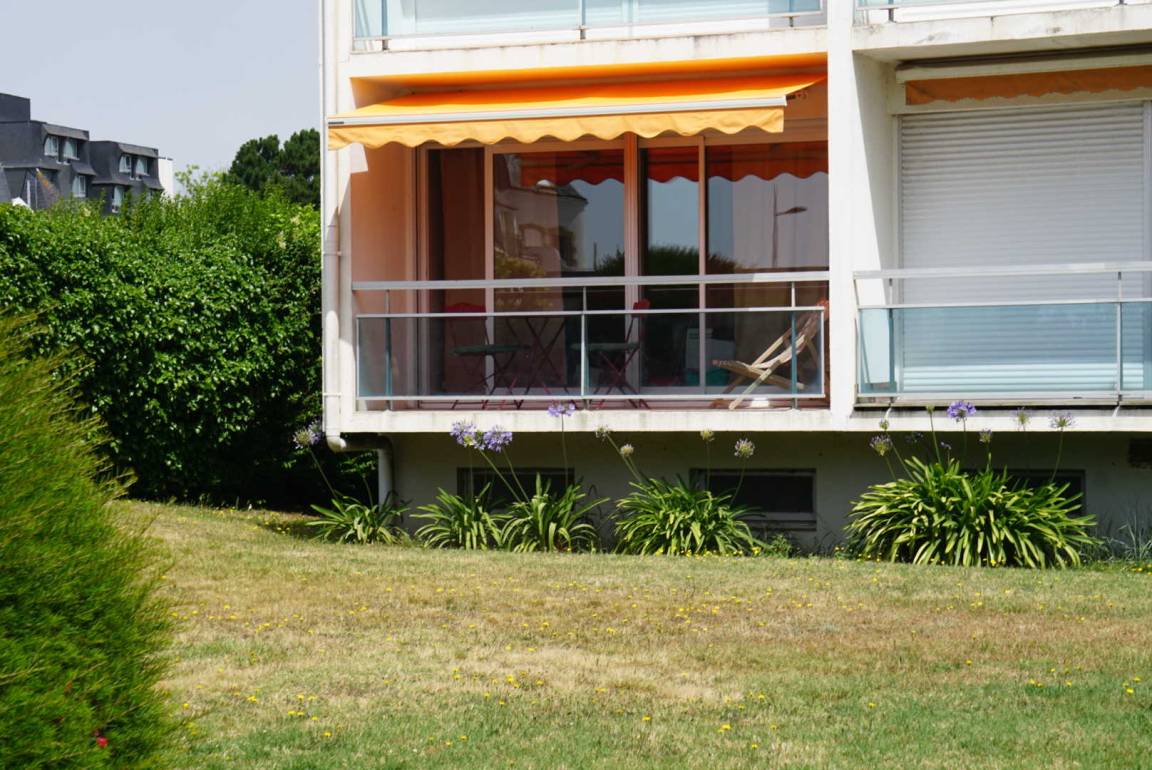 Dieses Studio auf der Gartenebene besteht aus einem Eingang, einem Wohnzimmer mit ausgestatteter Küche/Wohnzimmer/Wohnzimmer und einem Badezimmer mit WC. Im Wohnzimmer ist ein Schlafbereich mit einem 140x190 Bett eingerichtet. Vom Wohnzimmer aus gelangen Sie auf den 5 m² großen Südbalkon mit Esstisch, Liegestuhl und Markise. Der sichere Parkplatz der Residenz befindet sich unten auf der Rückseite des Gebäudes. Ein Parkplatz ist für Sie reserviert.
