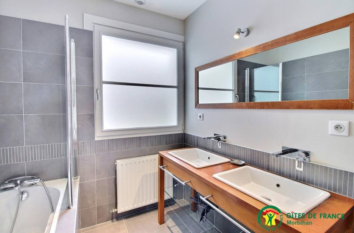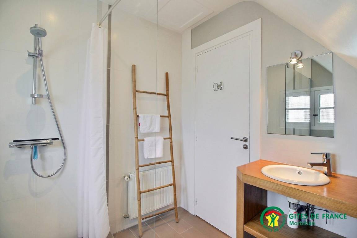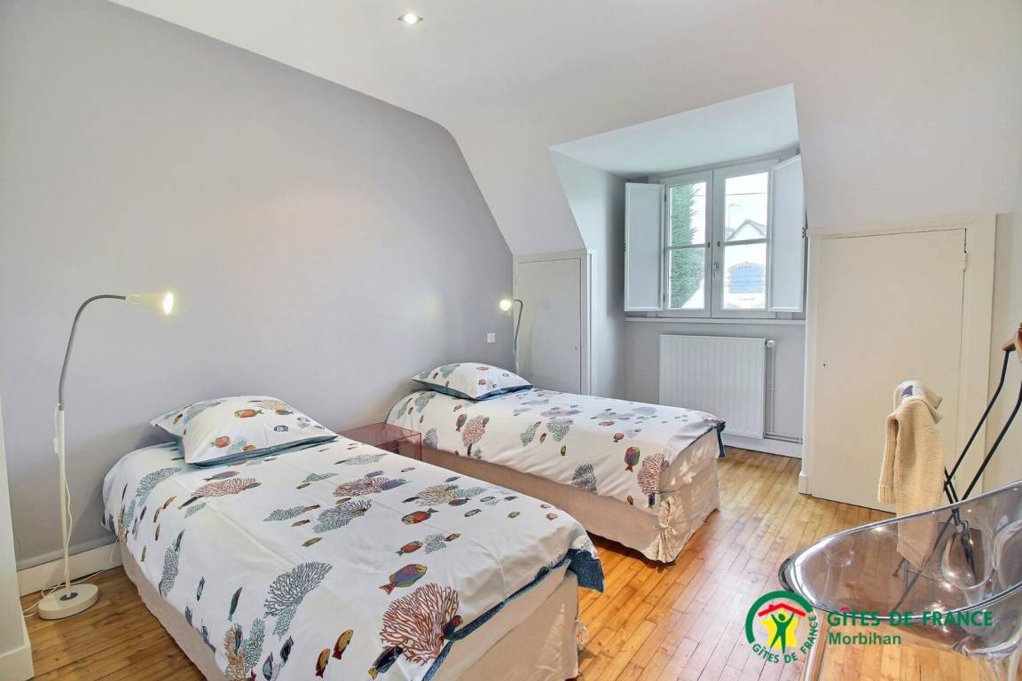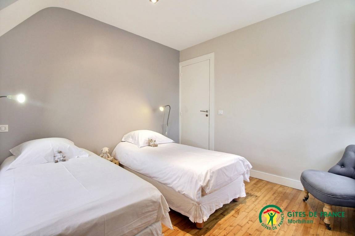 Diese Ferienwohnung bietet im Erdgeschoss: einen Eingang, eine Waschküche, ein Schlafzimmer (1 Bett 140), ein Badezimmer, eine separate Toilette und ein Wohnzimmer mit Einbauküche, Wohnzimmer und Lounge zum Öffnen auf der geschotterten Terrasse. Obergeschoss: ein Schlafzimmer (1 Bett 140) mit eigenem Duschbad, zwei Schlafzimmer (jedes mit einem 160 Bett teilbar in 2x80), ein Duschbad mit WC und ein separates WC. Draußen: ein kleiner Garten, ein großer Hof mit Kies, der Platz für 1 Fahrzeug bietet. Weitere Parkplätze in der Straße (kostenlos). Doppelhaushälfte bei 56G34918.