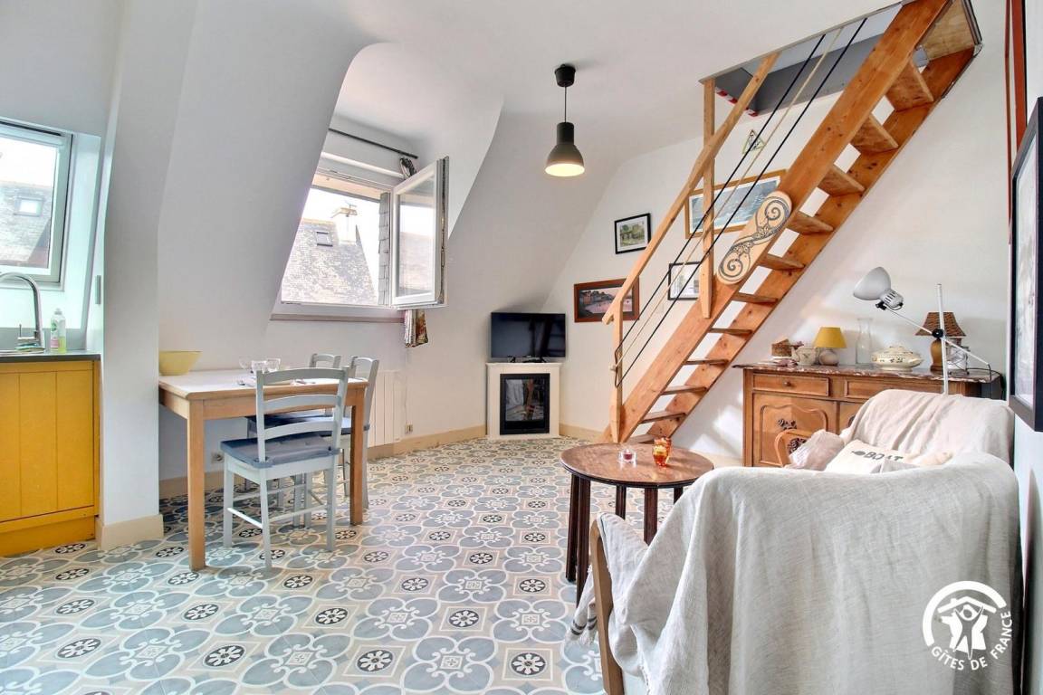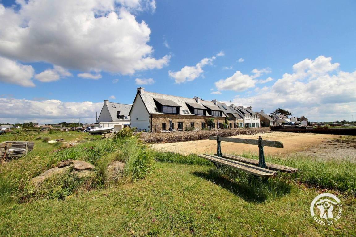 Der ehemalige Stall einer Austernfarm beherbergt heute zwei 36 m² große Apartments im Obergeschoss mit ruhigem Meerblick über die Bucht von Plouharnel.